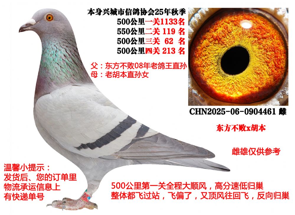 | 1645104 | 东方不败x胡本,2025年四次500公里成绩鸽,非常好 | ¥0元 | 0次 |