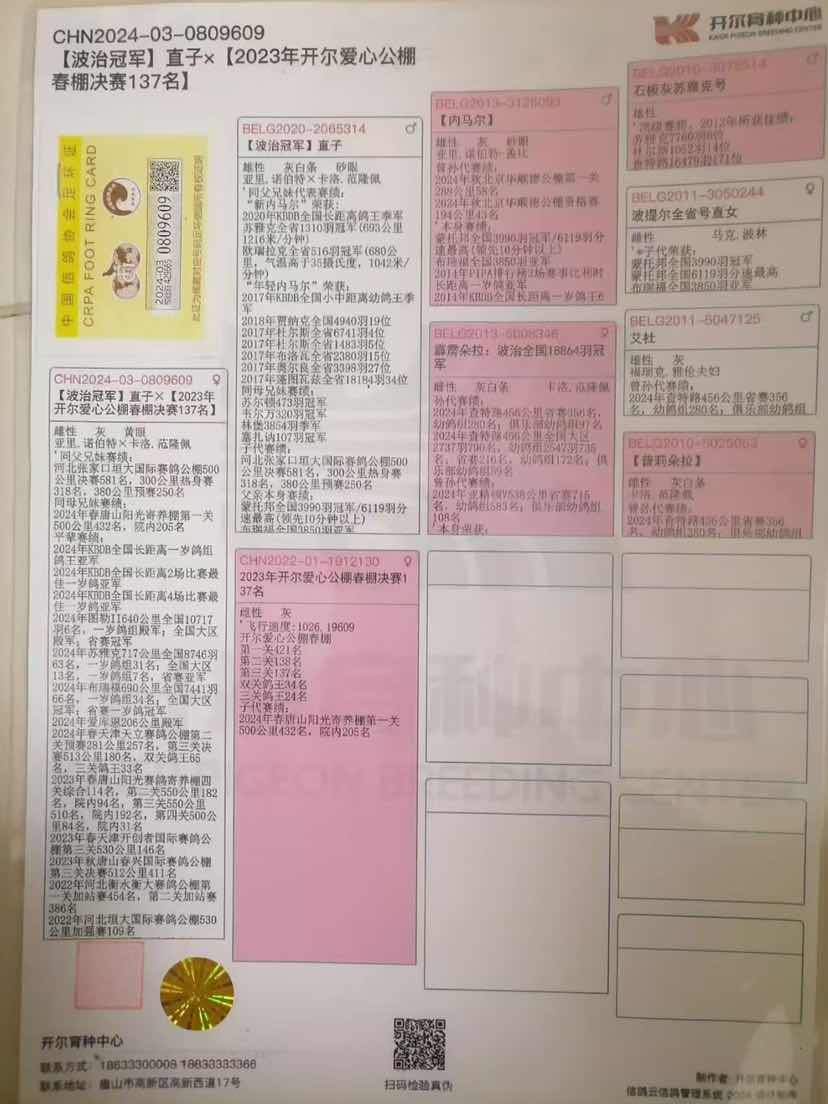 有血统书的都会上传,没有的为鸽友提供鸽子照片及上面育种记录信息