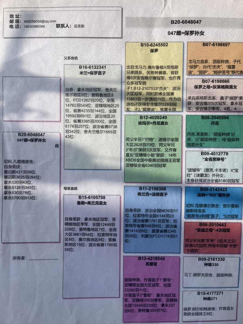 有血统书的都会上传,没有的为鸽友提供鸽子照片及上面育种记录信息