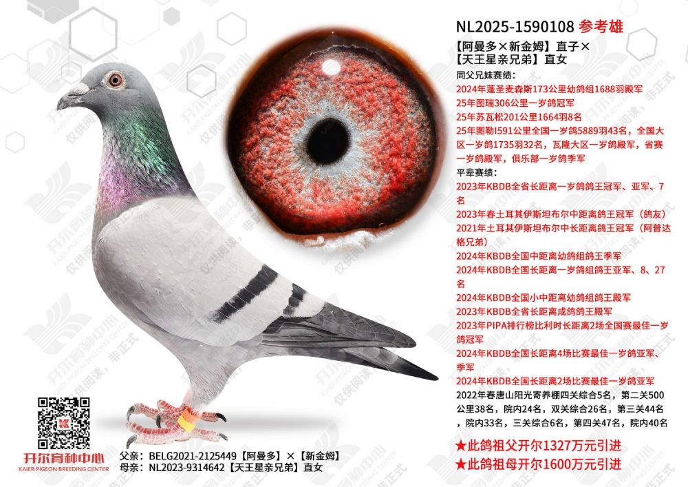 | 1650028 | 开尔大棚三关鸽王季军×克拉克十冠王直女 | ¥10000元 | 0次 |