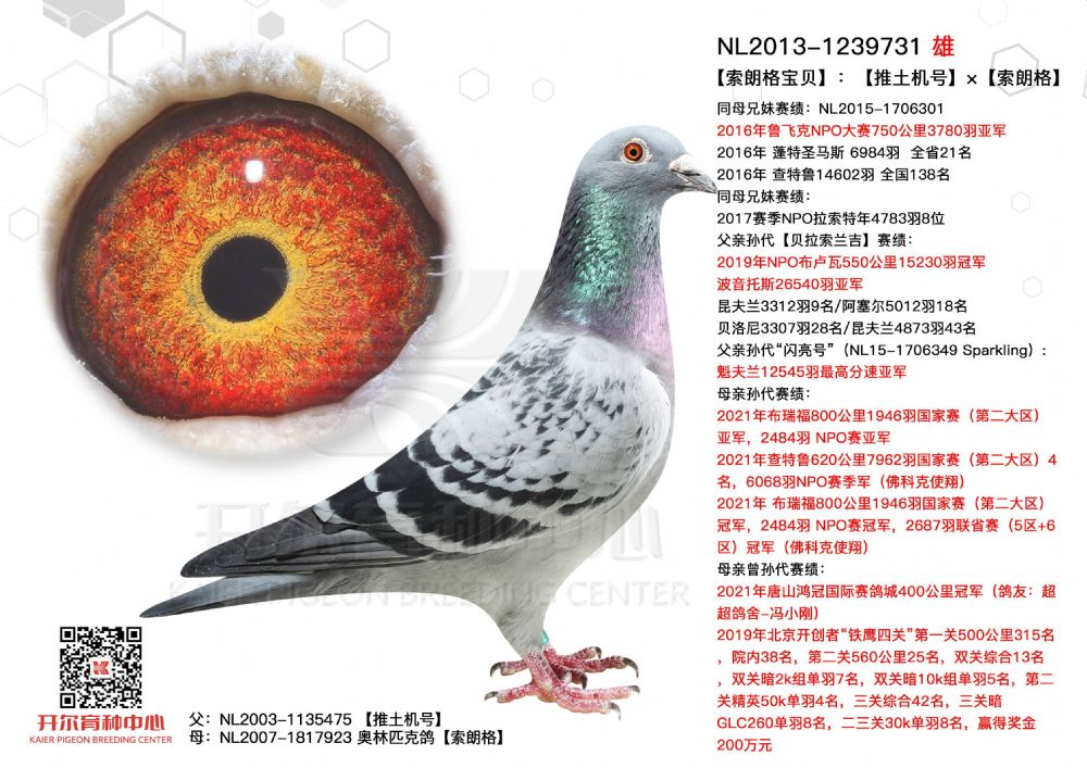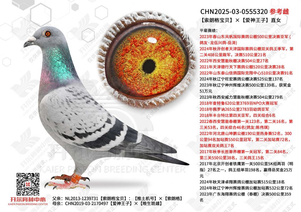 | 1650028 | 开尔大棚三关鸽王季军×克拉克十冠王直女 | ¥10000元 | 0次 |