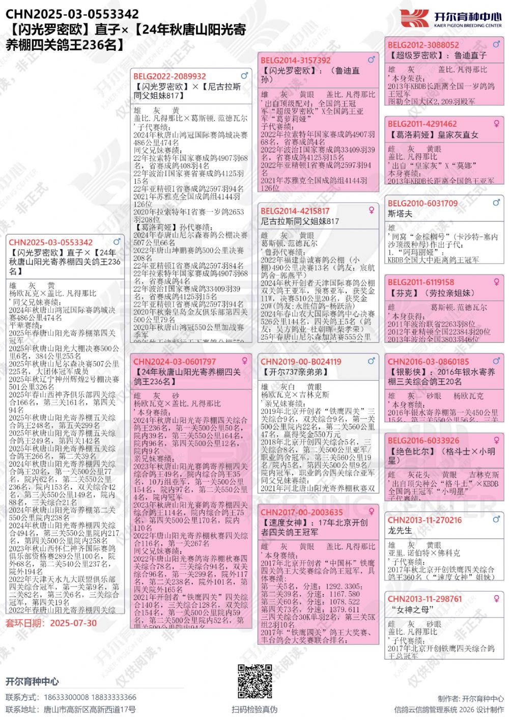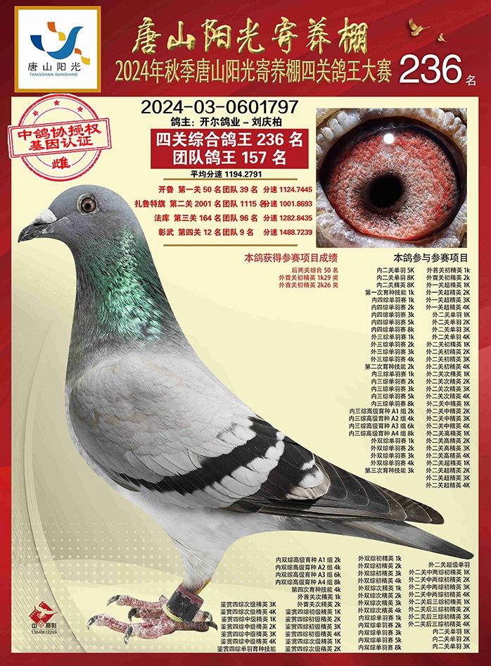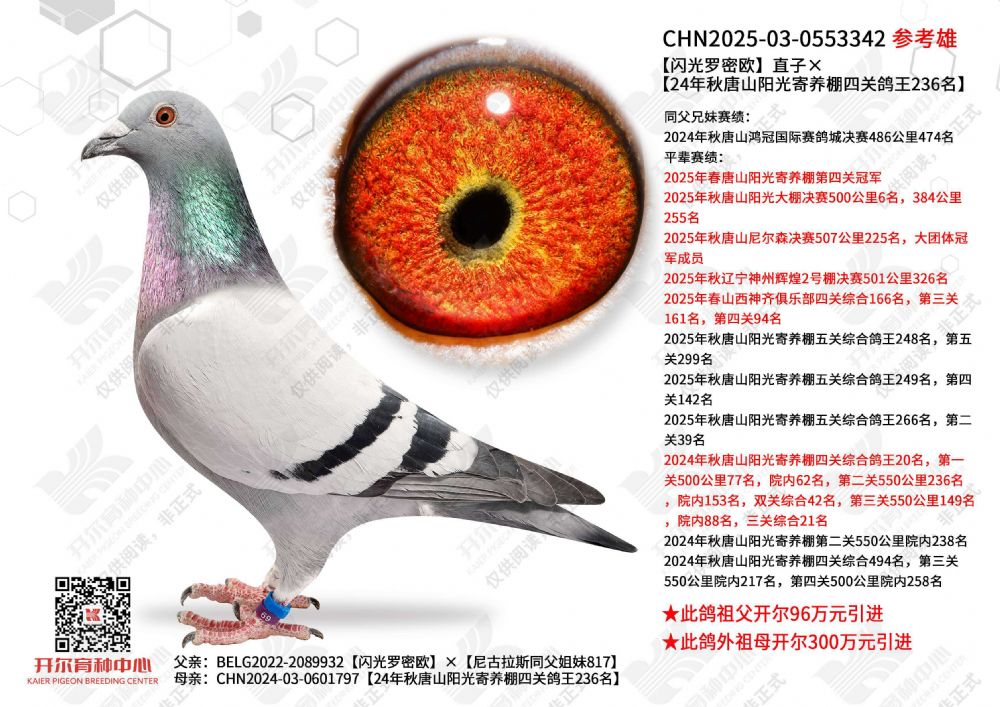 | 1650028 | 开尔大棚三关鸽王季军×克拉克十冠王直女 | ¥10000元 | 0次 |