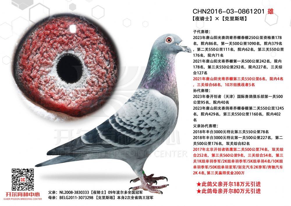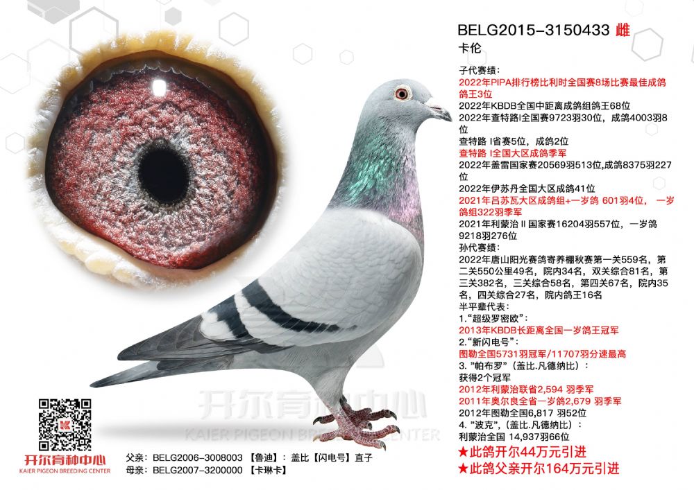 | 1650028 | 开尔大棚三关鸽王季军×克拉克十冠王直女 | ¥10000元 | 0次 |