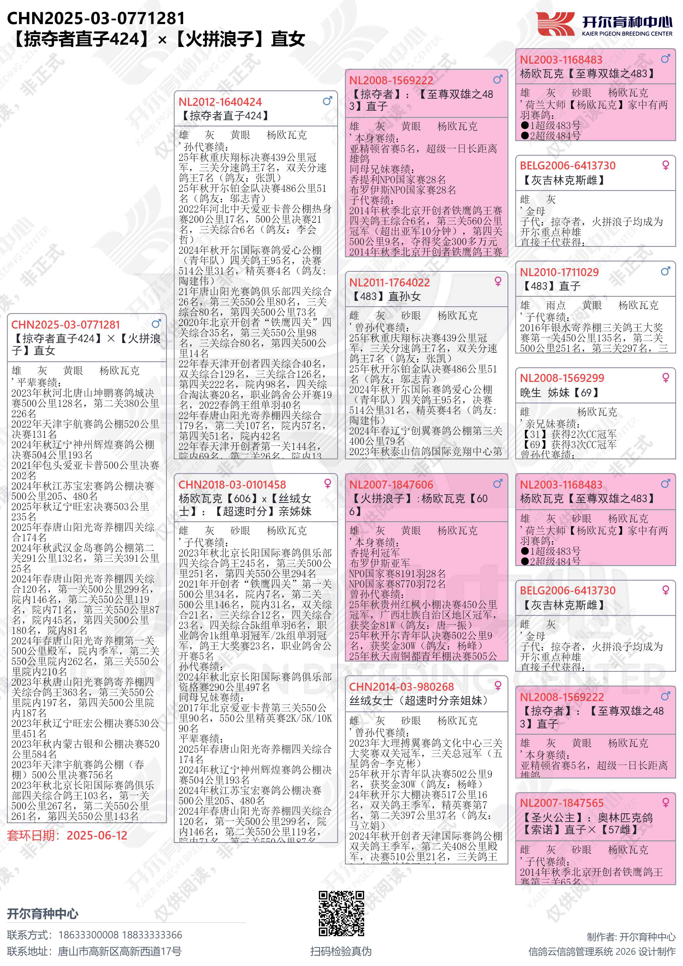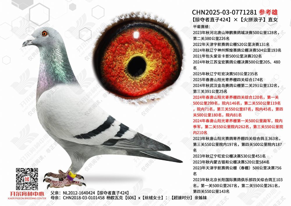 | 1650028 | 开尔大棚三关鸽王季军×克拉克十冠王直女 | ¥10000元 | 0次 |
