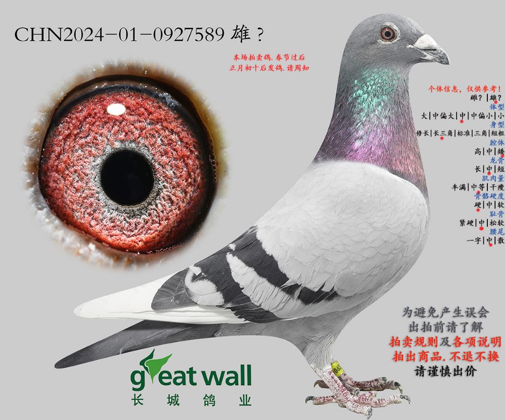 因拍卖鸽均是未做育过的种鸽或幼鸽,图内所标雌雄仅供参考,实际性别已实物为准。不做退换理由。