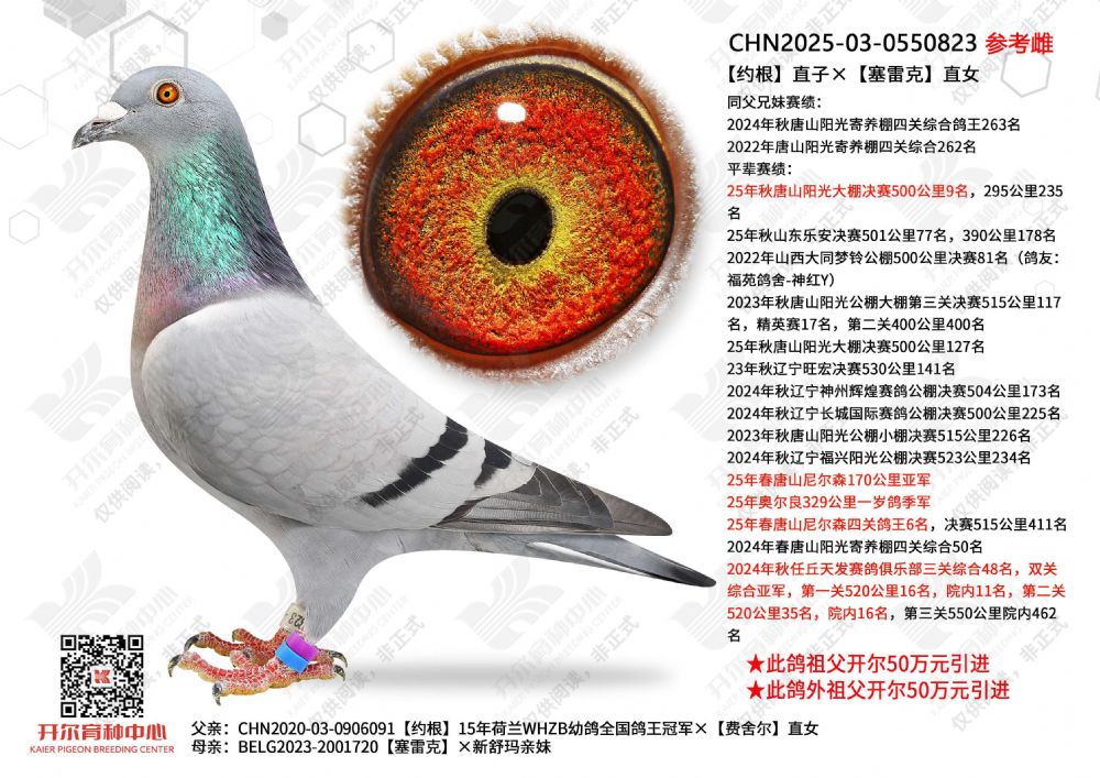 | 1650245 | 晚生灰雌直子×22年唐山阳光寄养棚秋赛四关综合265名 | ¥3000元 | 0次 |