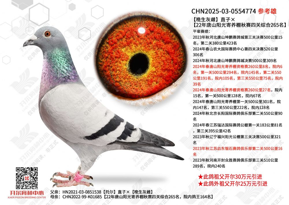 | 1650267 | 闪电哈利直子×开尔大棚三关鸽王季军直女 | ¥3000元 | 0次 |