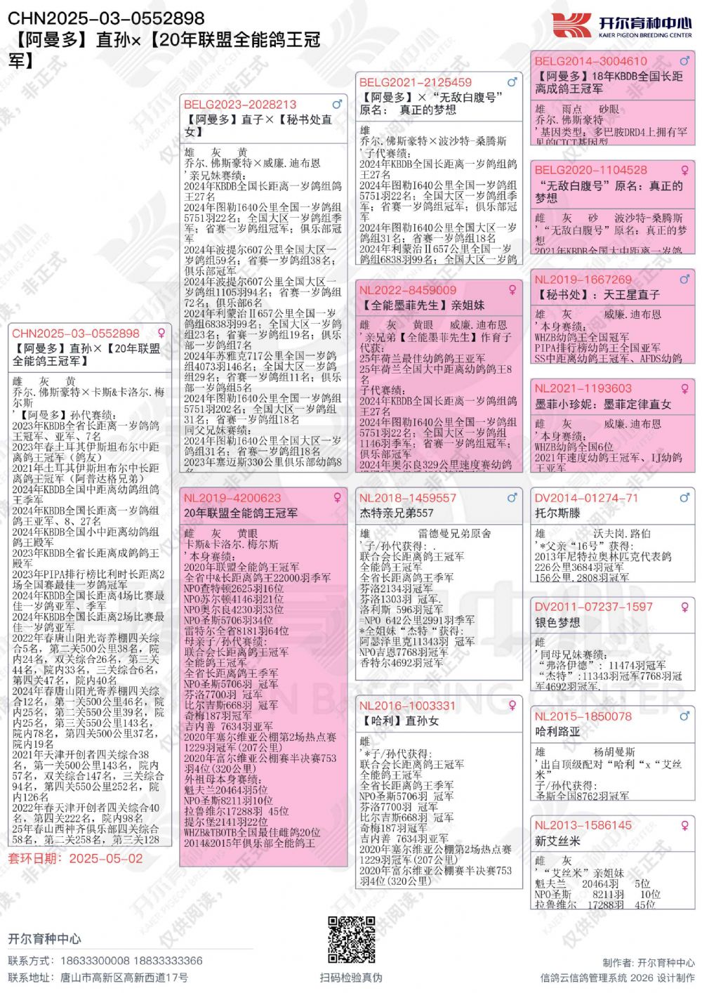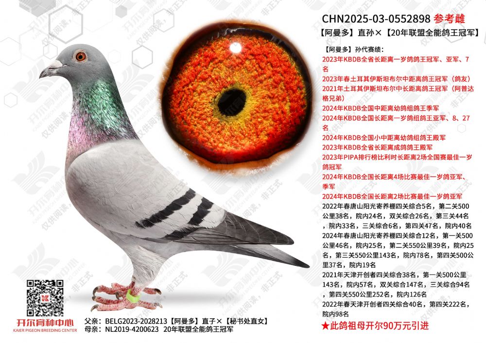 - 当前查看拍卖鸽:阿曼多直孙×20年联盟全能鸽王冠军