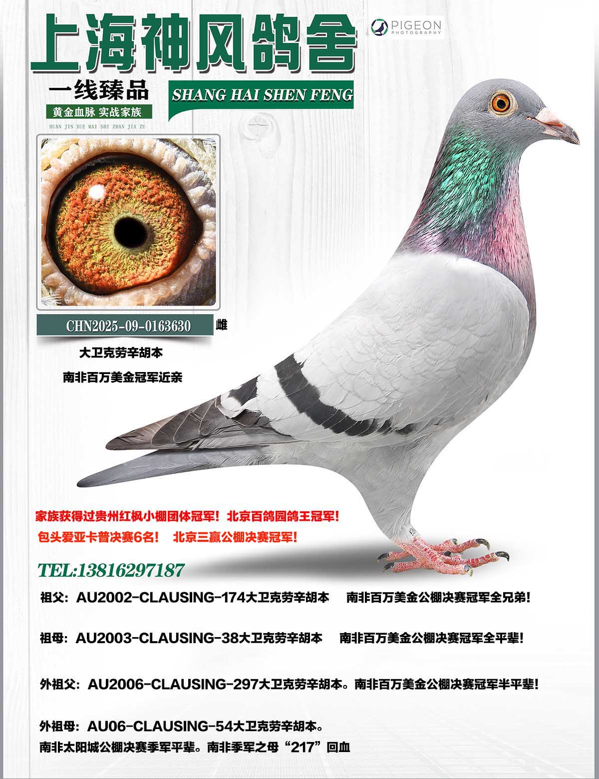 父亲:2015神风鸽舍私环-016南非冠军近亲!