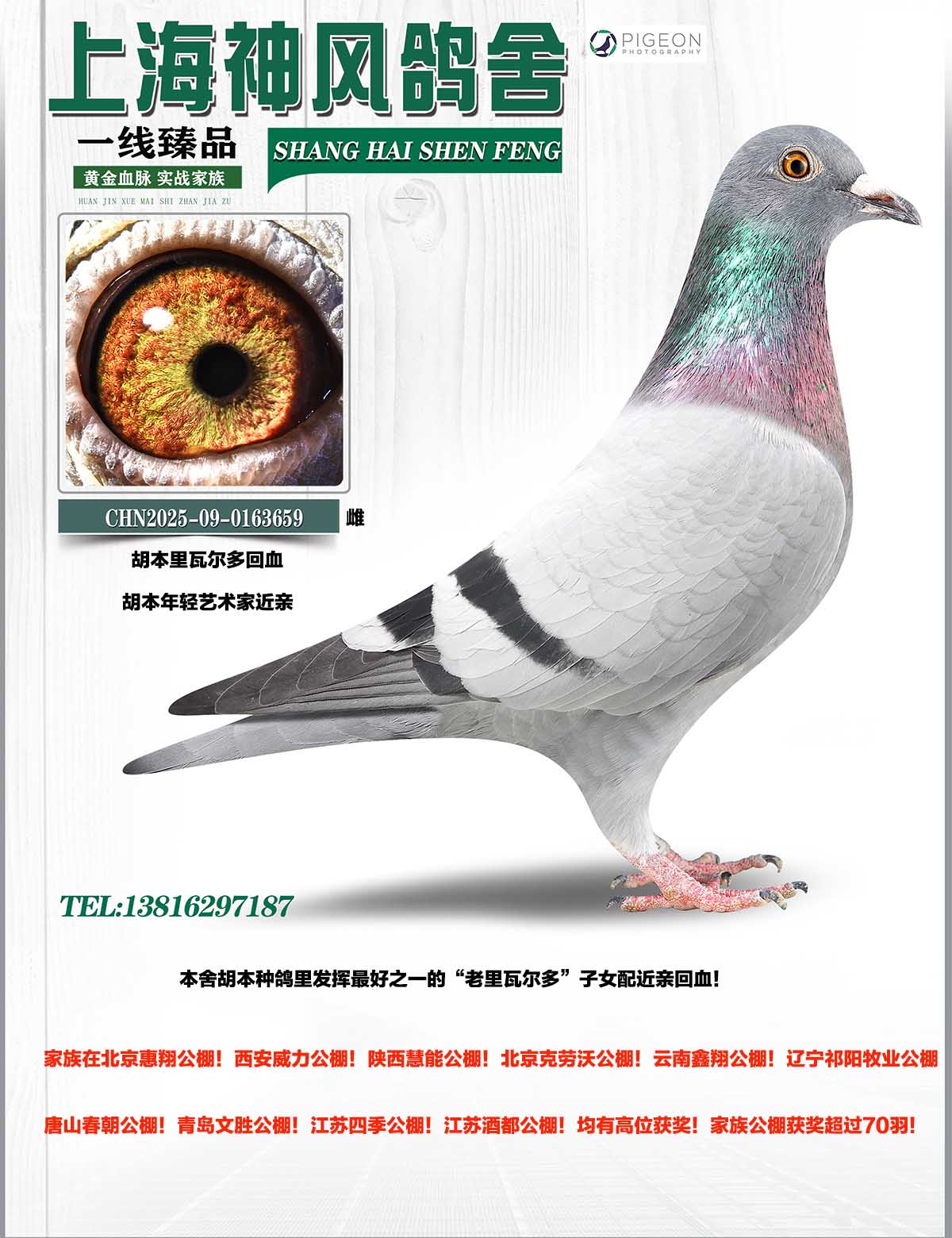 外祖父:B2014-6080734,胡本世界名鸽“里瓦尔多直孙