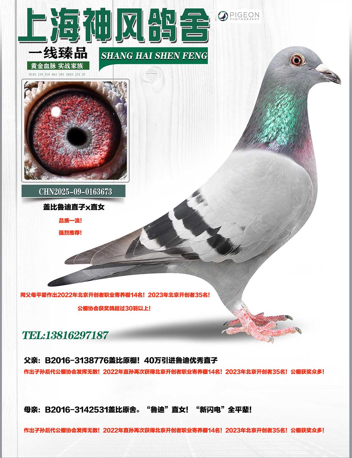 盖比头号名鸽“鲁迪”直子!作出子孙后代公棚协会发挥无数!2022年直孙再次获得北京开创者职业寄养棚14名!2023年北京开创者35名!