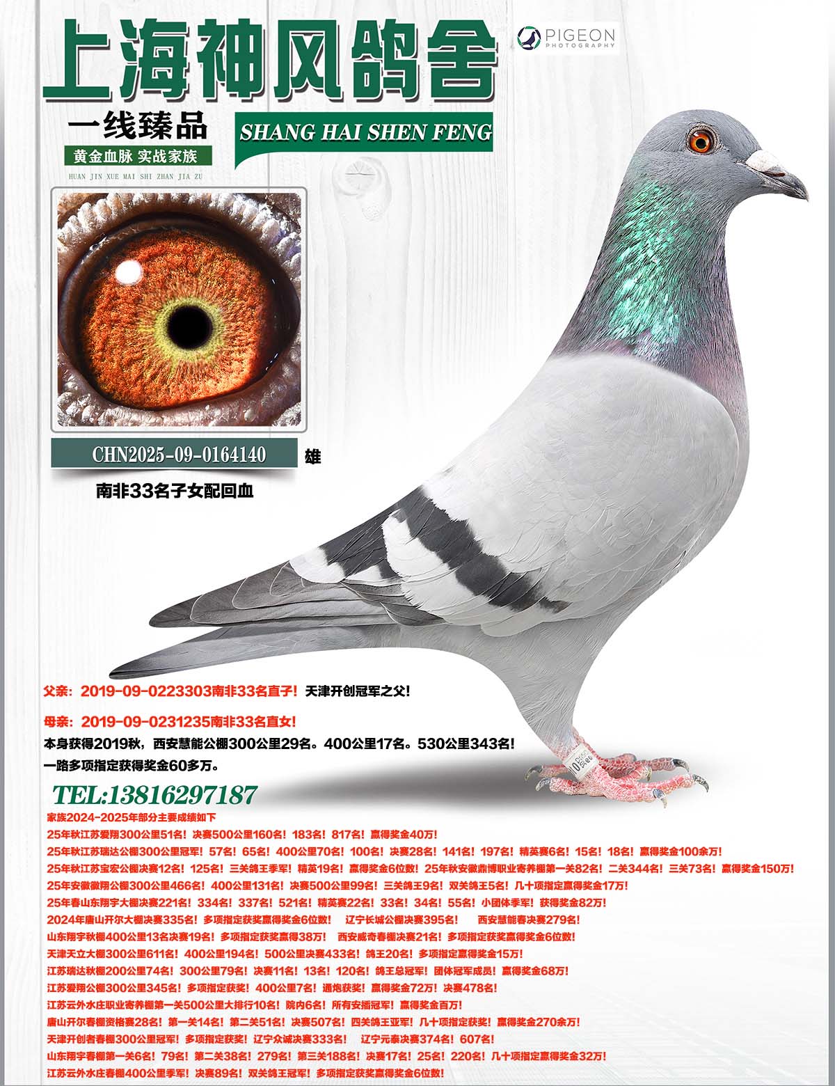 平辈和下辈作出25年秋江苏瑞达公棚300公里冠军!57名!65名!400公里70名!100名!决赛28名!141名!197名!精英赛6名!15名!18名!赢得奖金100余万!