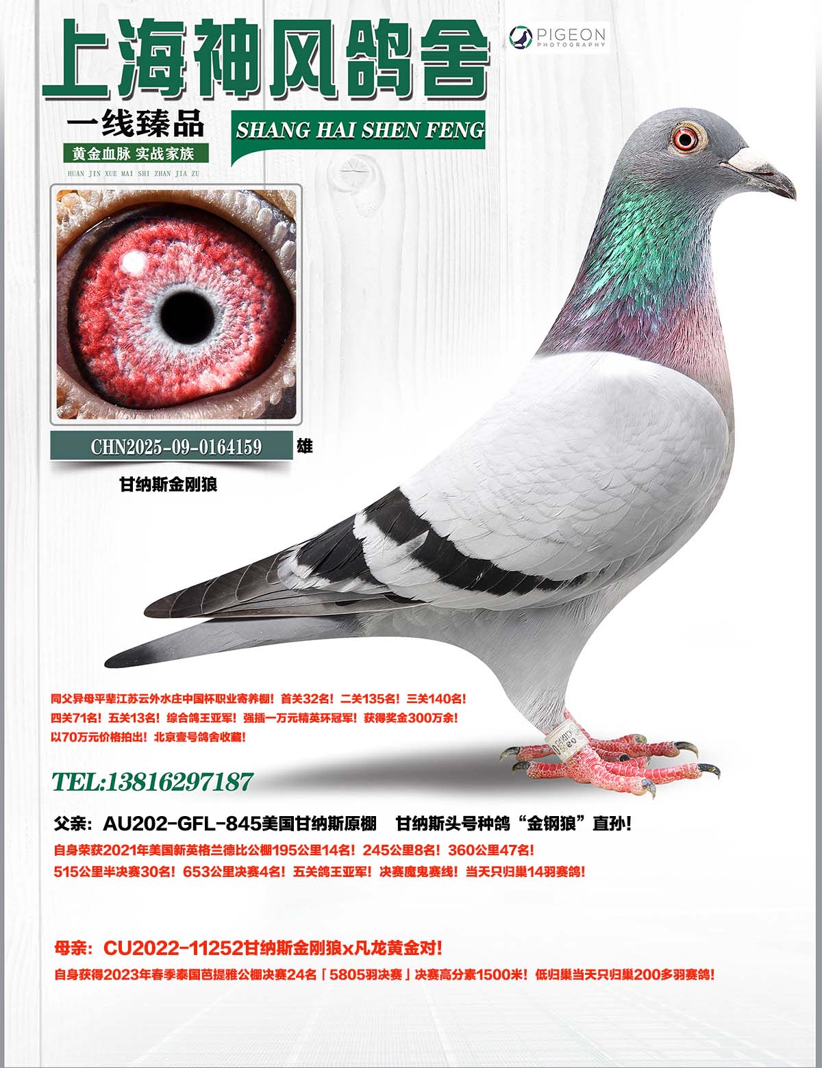 同父异母辈江苏云外水庄中国杯职业寄养棚!首关32名!二关135名!两关综合20名!三关140名! 四关71名!五关13名!综合鸽王亚军!强插一万元精英环冠军!获得奖金300万余!以70万元价格拍出!北京壹号鸽舍收藏!
