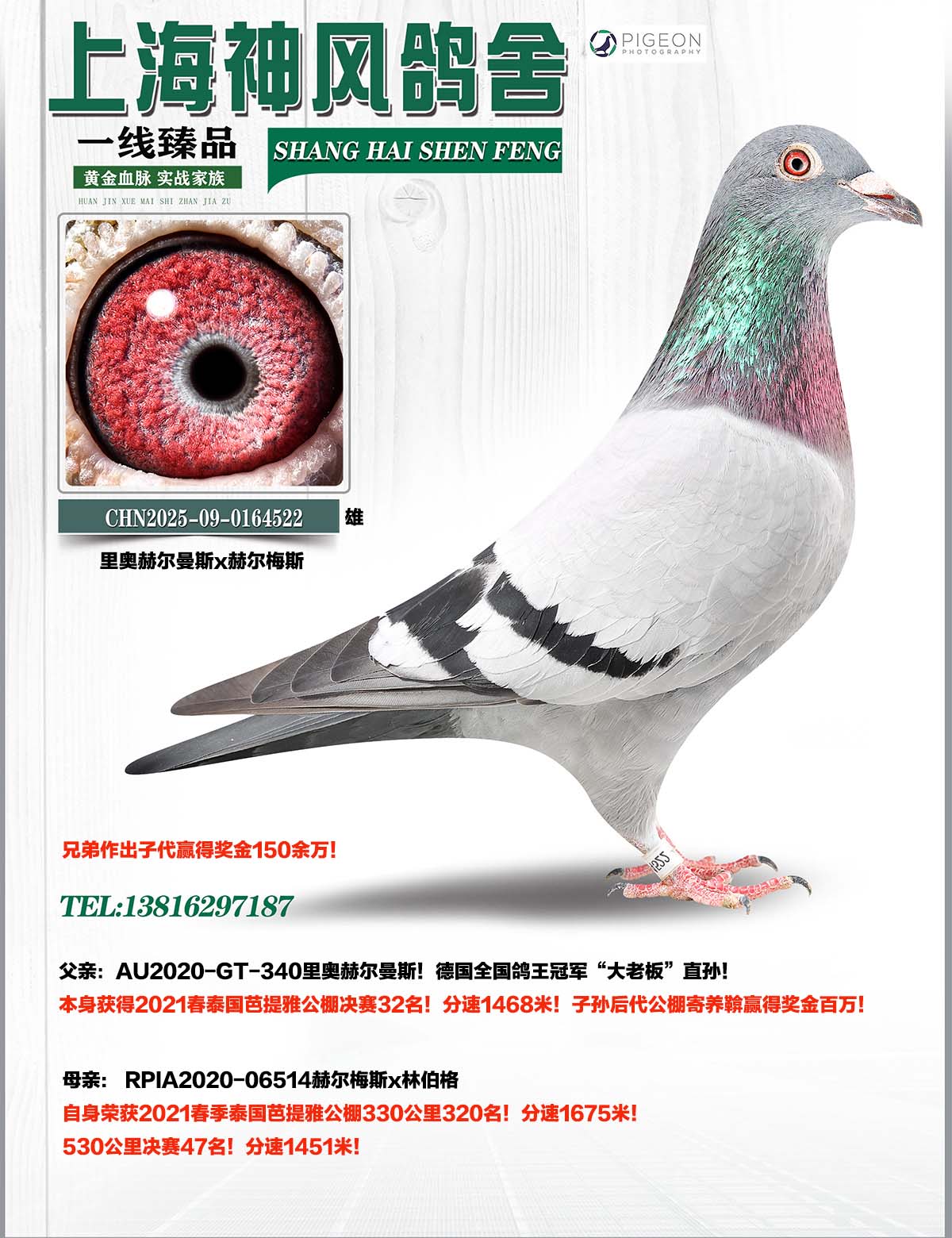 德国全国鸽王冠军!比利时赫伯特现役头号种鸽“大老板”直孙!南非百万美金公棚决赛11名直子!