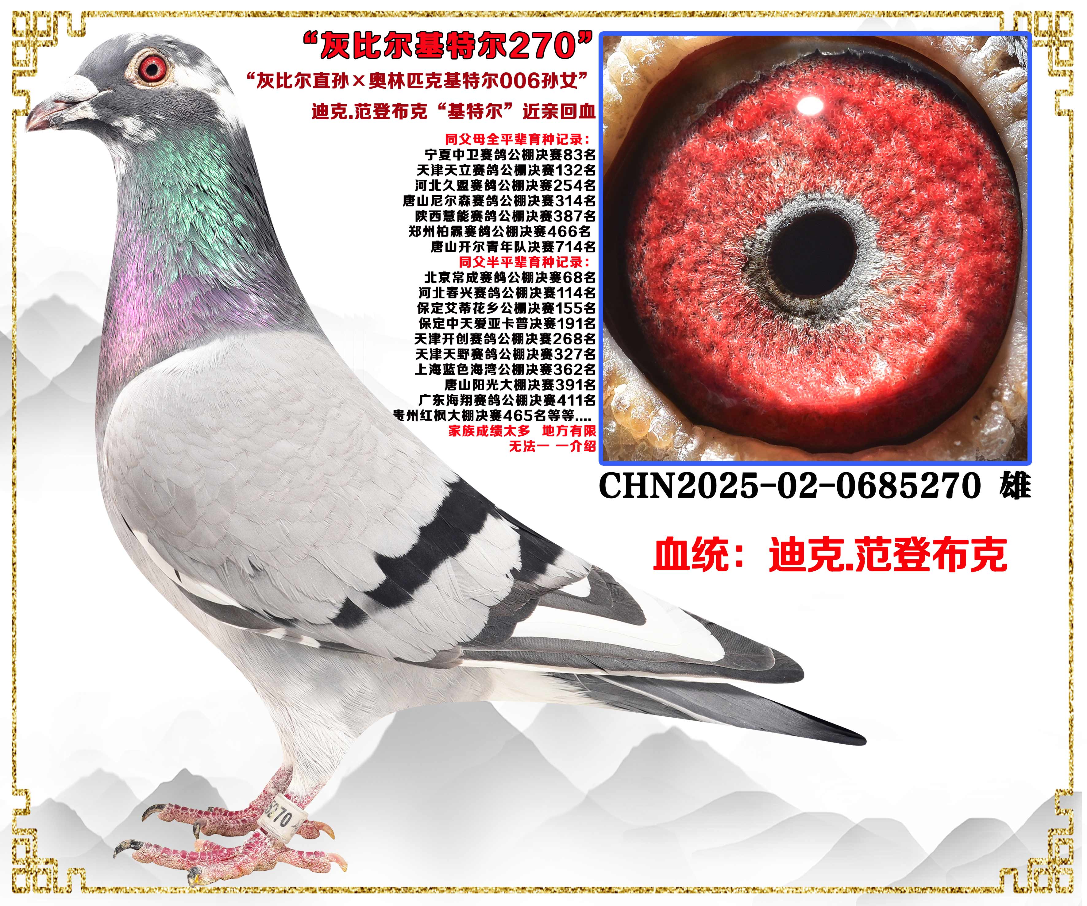 - 当前查看拍卖鸽:迪克.范登布克“灰比尔直孙×奥林匹克基特