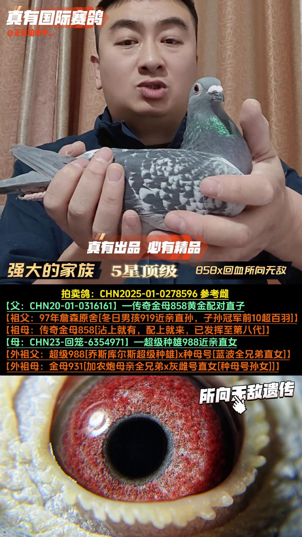 由于所有拍卖鸽均没有作育记录,因此无法100%保证雌雄的正确性,拍卖视频中的雌雄仅供参考,最终以实物为主。如有雌雄特殊要求请及时联系真有国际确认,所有拍卖鸽均享受7天免费换鸽服务(运费自理),由于拍卖形式的鸽子具备商品的唯一性,因此不支持退款服务,感谢大家的理解与支持!谢谢!