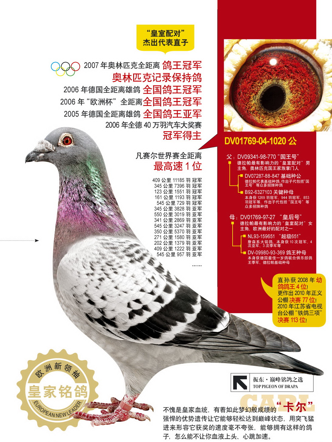 【在这三座金矿还未被世人发现之前,真有国际就第一时间把高品质的鸽子带到了国内,取得了空前的发挥。近几年大家才逐渐认识这几位大师鸽子的魅力。请记住!当任何商业鸽舍进入炒作后期的时候,他的鸽子质量与价值都会急剧下降,即便是詹森兄弟也难免于此。所以引进这家鸽舍最巅峰时期的鸽子,得以延续,才是真有国际成功的致胜法宝。】