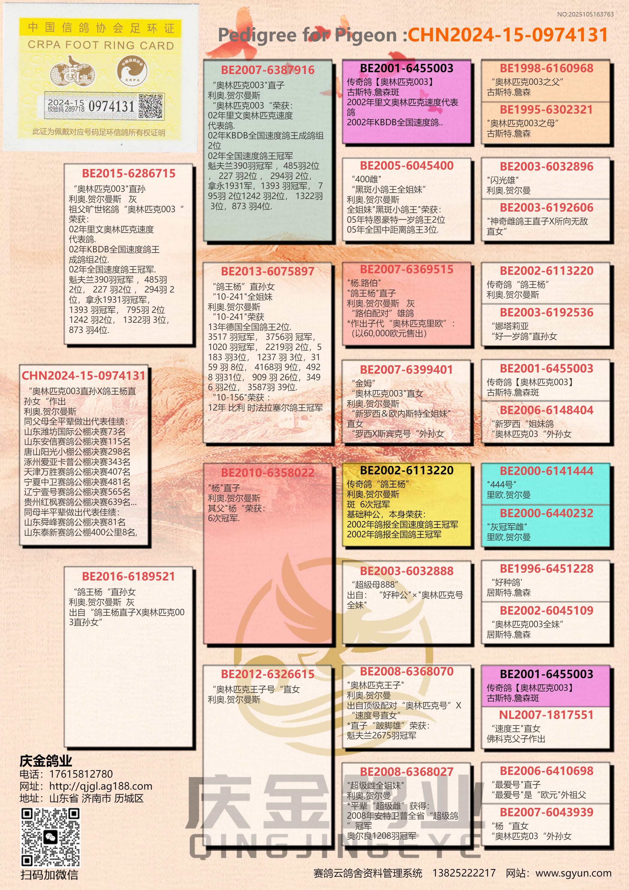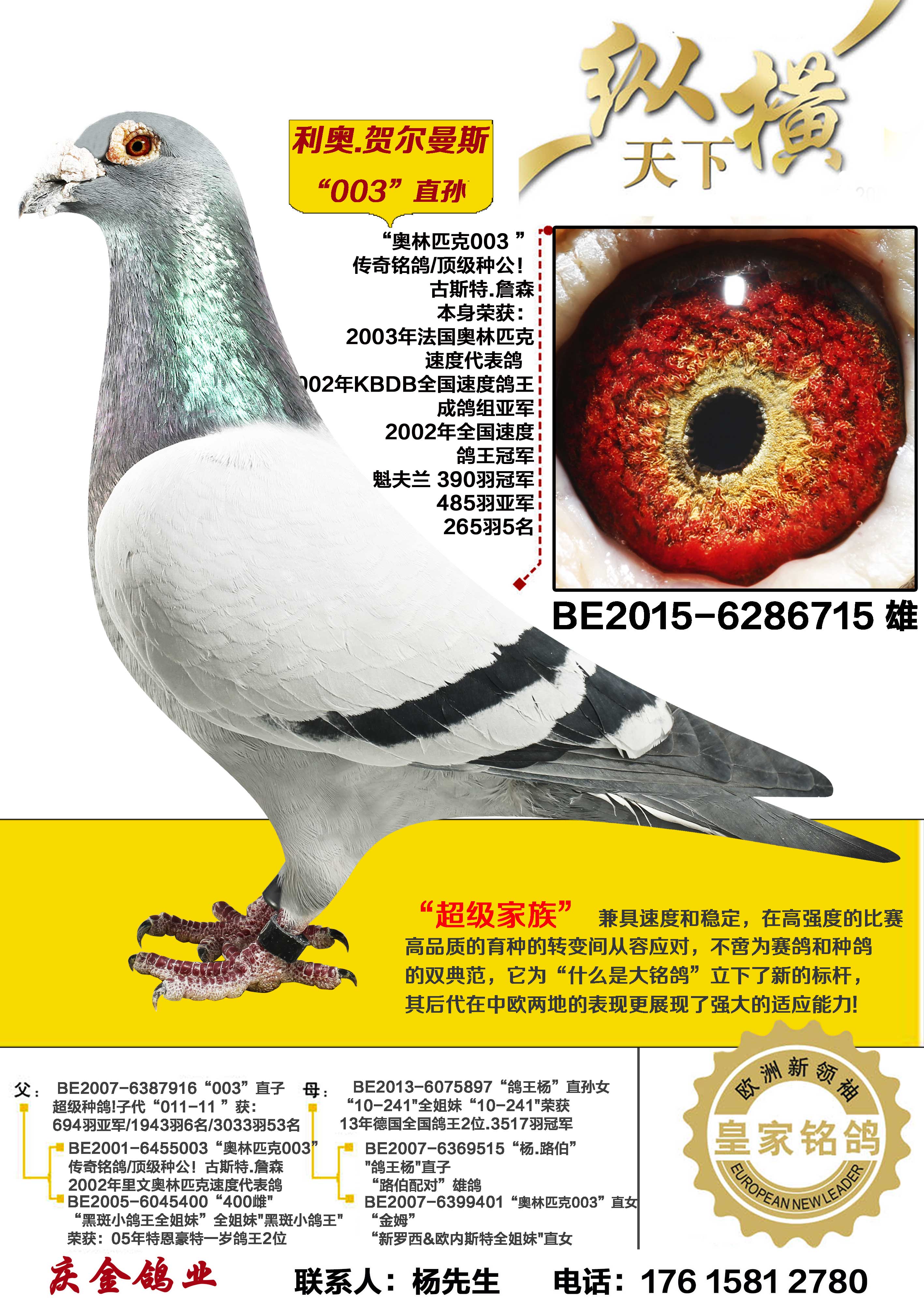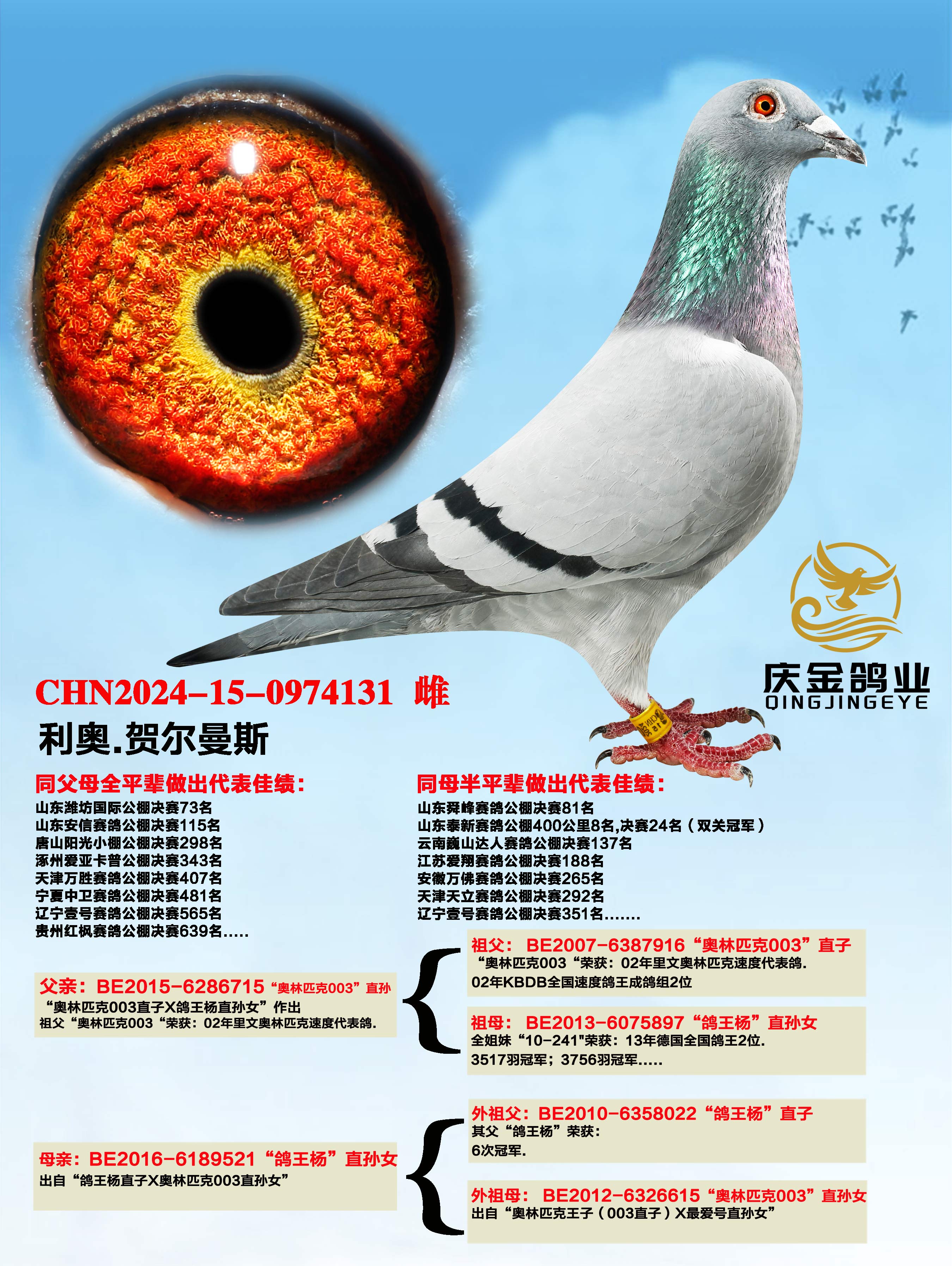 利奥.赫尔曼斯“奥林匹克003.直孙”x“鸽王杨”直孙女
