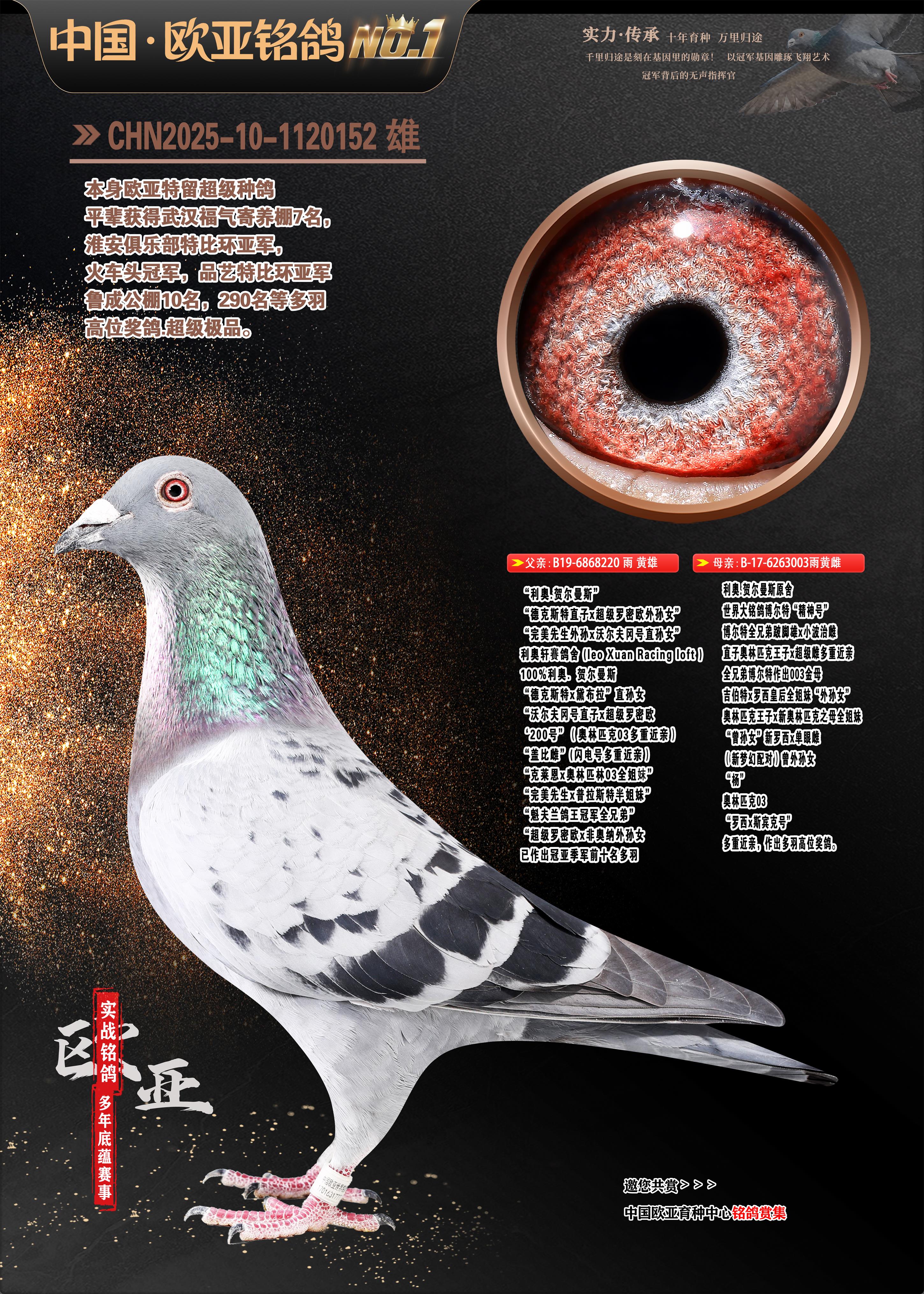 24年秋南京特比环欧亚荣获大团体冠军.小团体冠军551公里大特比13名.14名.16名.19名.20名.21名.24名.26名.27名.28名.42名.52名.54名.57名.65名.66名.68名.70名.71名.72名.74名.76名.80名.82名.83名.84名.85名.86名.90名.92名.110名.116名.121名.122名.128名.131名.158名.161名.164名.165名.166名.172名.174名.177名.182名.195名.196名.201名.205名.208名.210名.216名.253名.269名.275名.276名.294名.296名.299名,,24年秋云南天南铜都公棚决赛415名.天南铜都小棚决赛409名.云南玉活公棚决赛102名.490名.团体32名上笼二羽进二羽,天南铜都大棚506公里决赛445名。热烈祝贺河北省巨鹿县李兰生老师用欧亚泰山号血系连续十一年夺冠军,河北省国家赛冠军.全国季军等多次前十名高位,扬州王军王总用欧亚利奥24年春季获山东翔宇公棚决赛33名盖比53名。南京刘正龙刘总用欧亚盖比获得24年秋山东潍坊国际公棚决赛42名.精英赛30名.三关鸽王71名.决赛86名.加站赛16名.南京市特比环A组鸽王9名.B组鸽王5名.6名.C组鸽王5名.精英赛冠军4名.技能赛A组冠军4名.5名.秦淮区特比环荣获15名.46名.48名.87名。四川西昌徐亮徐总用欧亚利奥获得凉山州聚友决赛177名.第二关亚军双关鸽王19名.三关鸽王105名.云南豪庭公棚决赛603名。热烈祝贺24年四川重庆翔园鸽舍用欧亚泰山号荣获春季400公里冠军.秋季500公里冠军,河北王总用詹森X利奥获得千羽千翔公棚400公里冠军,广东蔡楷焕荣获24年秋爱好者 赛鸽俱乐部三关鸽王季军.一关420公里99名.二关450公里11名.三关520公里32名.单关季军.7名.12名,江西李卫兴荣获贵州红枫公棚8名.共翔俱乐部寄养棚四关综合鸽王30名.一关400公里78名.二关500公里55名.三关520公里37名.四关500公里57名.同父母获公棚18名.雷鸣获得武汉黄浦育翔中心冠军,四川陈文获得四川明鸿俱乐部300公里梦幻2名.3名.4名.9名.10名.13名.14名.15名.31名.34名.40名.41名.42名.43名.69名.71名.72名.73名.74名.94名.95名.97名.98名.99名.419公里决赛荣获总冠军7名.总共归巢9羽,四川徐亮获豪庭决赛603名,山西郑勇获得山西泰鑫公棚决赛255名詹森红狐,热烈祝贺马总获得开尔(飞跃队)决赛9名获奖金1310000万元.第一关52名,天津津福资赛180公里96名.获奖金429543万元,欧亚支持全国鸽友24年秋多人报喜 祝大家取得更好成绩,给欧亚报喜鸽友欧亚决定给每人赠送一羽超级种鸽。欧亚俱乐部特比环多关鸽王成绩:15年秋淮安特比环黑色星期一全会上笼9700多羽,当天无鸽归巢,第二天全会归巢357羽,本舍归巢158羽.前十名八羽.前一百名归巢57羽,16年春季获五关鸽王总冠军,总亚军四名.六名.七名.九名.十名.晶艺俱乐部520公里冠亚季军5名.6名.7名.9名.11名等,火车头冠军.季军6名.8名.9名.10名,16年秋晶艺俱乐部特比环520公里亚军.季军4名.6名.7名.9名,15年春南京白下特比环冠军.亚军.季军6名.7名.8名.9名.10名.指定鸽A B组获得冠军.亚军.季军4名.5名.,17年淮安特比环亚军.4名.5名.7名.8名.10名.六关鸽王总冠军.4名.6名.9名.10名,寄养棚宿迁刘总20羽特比环获冠军.季军.4名.7名.8名.9名等。18年荣获万羽特比环六关鸽王总冠军.总亚军.总季军.6名.8名.十名.单关四羽冠军.二羽亚军.四羽季军.前十名27羽。19年秋万羽特比环六关鸽王总亚军.总季军.5名.8名等,单关二羽冠军.三羽亚军.一羽季军前十名31羽。20年秋淮安市鸽会四关特比环大赛风雨无阻鸽王亚军.鸽王六名,金品俱乐部万羽特比环六关鸽王总冠军,总亚军.四名.五名.六名.七名.八名.十名.前二百名鸽王35羽,单关冠亚季军前十名四十多羽,火车头五关鸽王季军.六名.八名.前二百名鸽王十七羽。20年春荣获淮安五区一市四关鸽王总冠军.亚军.四名.八名.九名。21年秋荣获金品万羽特比环大赛六关鸽王总亚军.总季军.四名.七名.九名.十名.单关冠亚军季军前十名三十多羽。火车头协会鸽王六名.七名.十名.单关前十名十七羽。22年秋荣获鸽王总冠军.总亚军.5名.7名.8名.9名.11名.单关冠亚季军前十名三十多羽,第一关单关前二百名四十多羽,第二关前二百名三十多羽,第三关前二百名四十多羽,第四关前二百名四十多羽,第五关前一百名53羽。23年秋荣获鸽王季军.五名.八名.十名.13名.17名.20名.27名等多羽鸽王.单关前十名二十多羽。公棚.寄养棚部分成绩:16年秋宁夏黄河公棚总冠军电脑戈马力指定通炮冠军,17年送八羽参赛获得鸽王八名进奖四名,支持韩总荣获八名。支持鸽友荣获宁夏中卫公棚决赛总冠军.精英赛冠军,支持18年宁夏黄河公棚决赛冠军詹森X泰山。安徽鼎博寄养棚院内外四关鸽王总冠军.鸽王十七名.三十七名同窝,鸽王39名.42名.58名.67名。18年山东公棚预赛冠军.决赛65名.送八羽进奖五羽.指定获奔驰汽车一辆。支持鸽友获得云南蓝云公棚冠军.盖比X佛卡门。支持鸽友荣获云南银集公棚决赛冠军 詹森427X520血系 速度赛6700羽冠军。17年荣获金马俱乐部寄养棚四关鸽王总冠军.季军.六名.八名.第一关冠军.亚军.季军四名.七名.十一名.金牌教练奖。支持鸽友18年北京费翔公棚预赛九名电脑X桑杰士,支持鸽友荣获陕西威力公棚决赛11名.内蒙古临河寄养棚四关鸽王六名.詹森配泰山,支持河北王总用欧亚詹森427配胡本喜获20年秋开尔青年棚季军。云南东荣公棚16年预赛冠军.决赛77名.17年决赛12名.詹森红狐X泰山,17年平安公棚决赛4名 詹森427。欧亚获得21年金母寄养棚第一关四名.第二关5名.第三关5名.6名.7名.10名.三关鸽王总冠军,四关鸽王14名.十羽鸽王。支持河