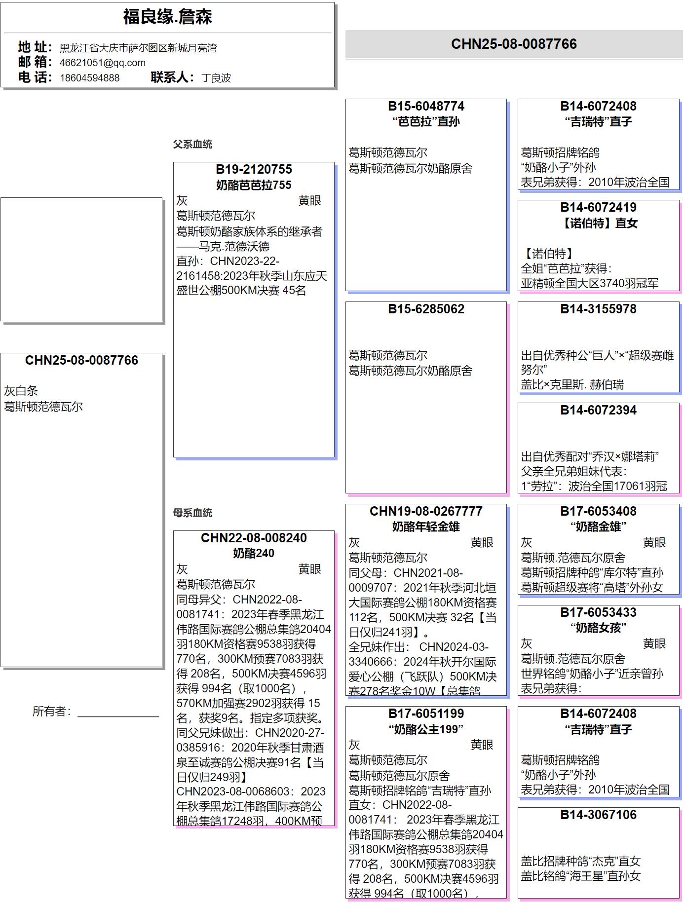 外祖母:“奶酪公主199”B17-6051199 奶酪小子近亲曾孙