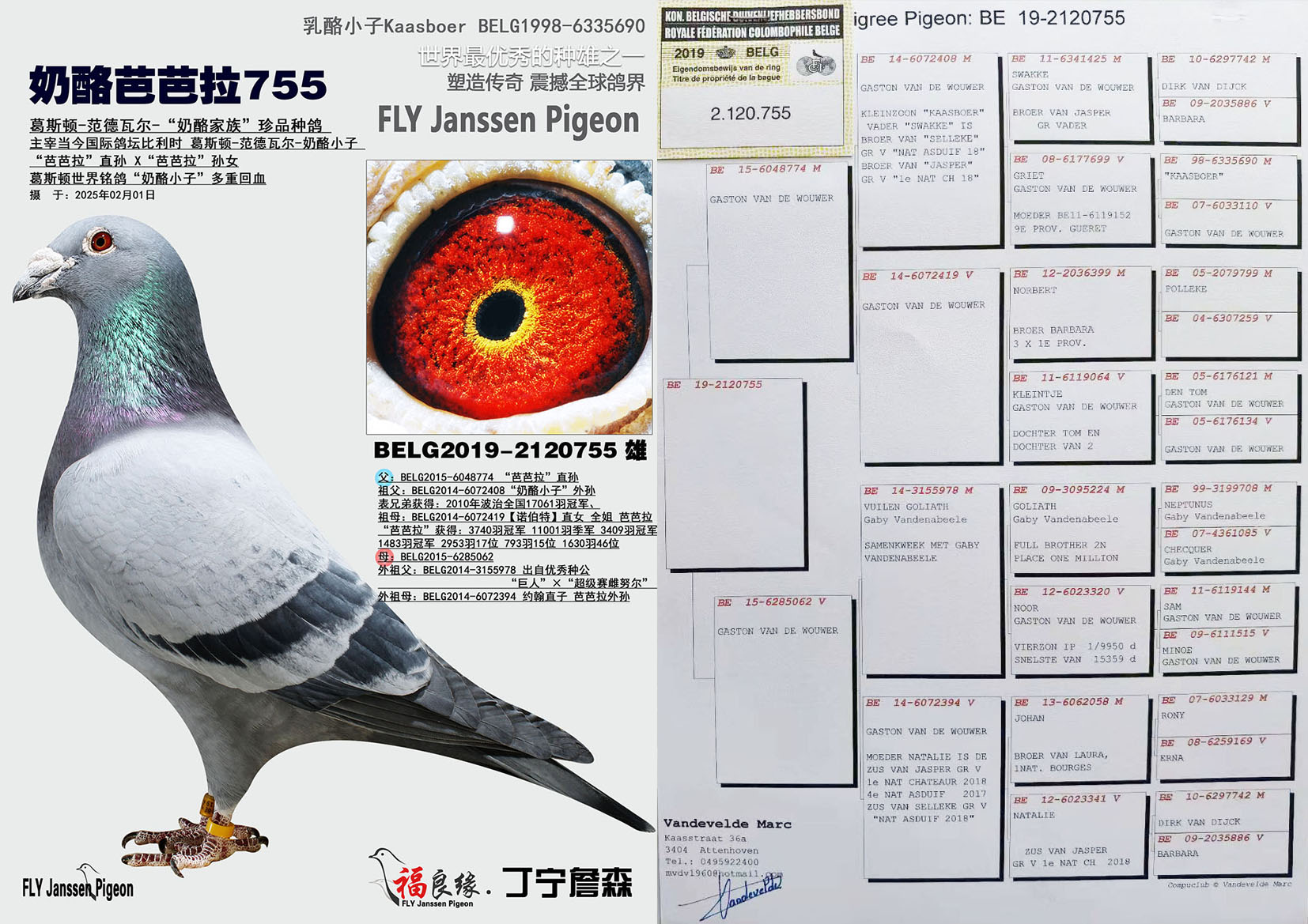 曾外祖母:B14-3067106 盖比招牌种鸽“杰克”直女