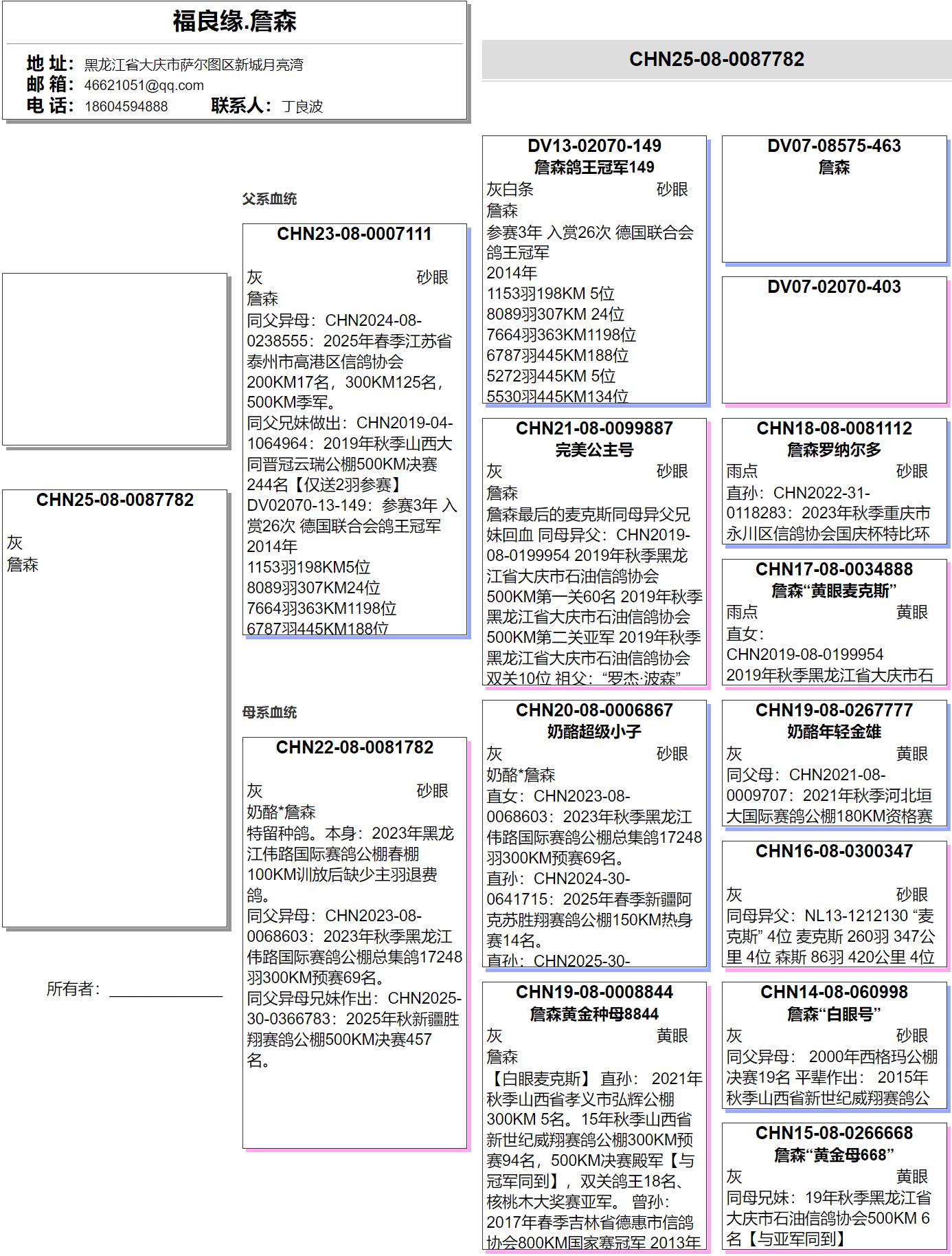 祖父:“詹森鸽王冠军149”DV02070-13-149 灰白羽 砂