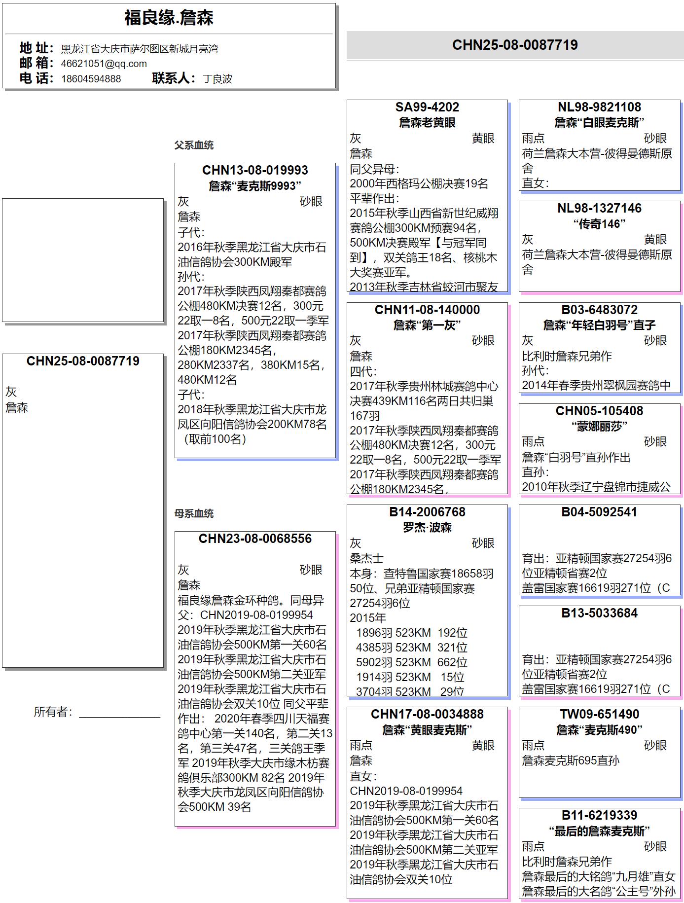 曾祖父:B03-6483072 詹森名种年轻白羽号直子 比利时詹森兄弟作Janssen