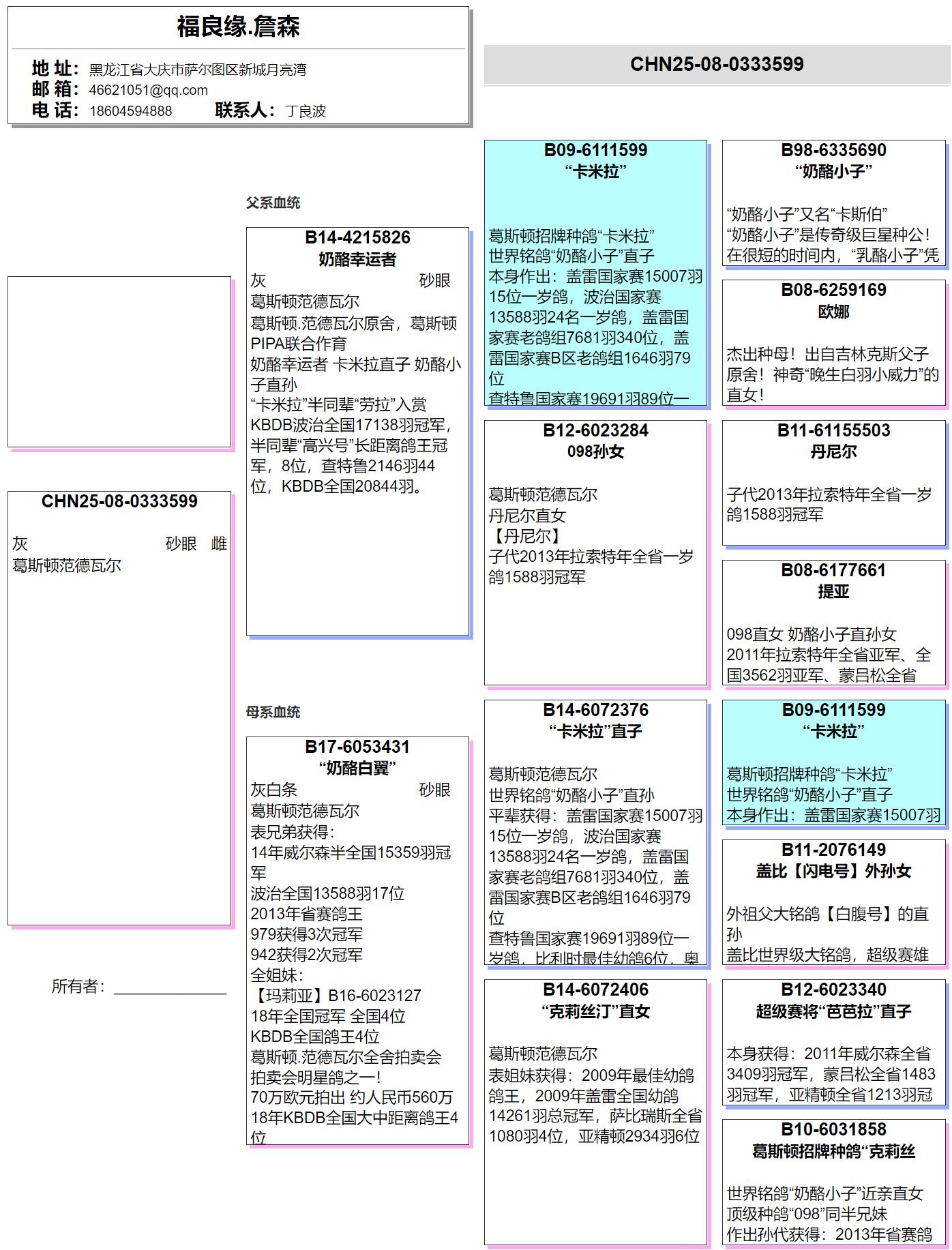曾外祖父:B09-6111599 葛斯顿招牌种鸽“卡米拉”