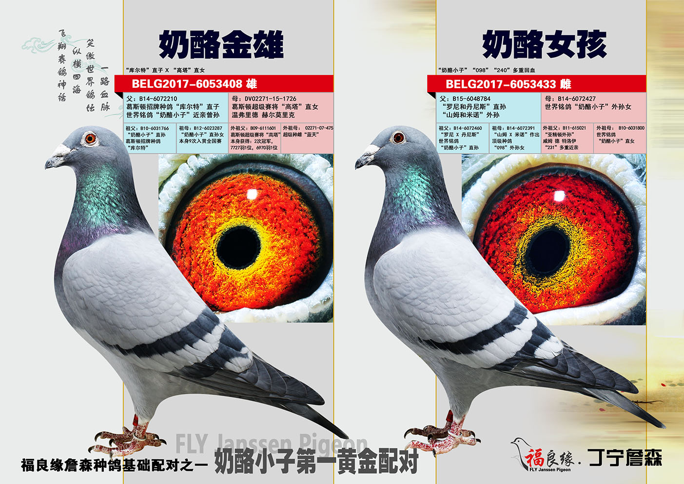 “罗尼”顶级种公,世界铭鸽“奶酪小子”直子