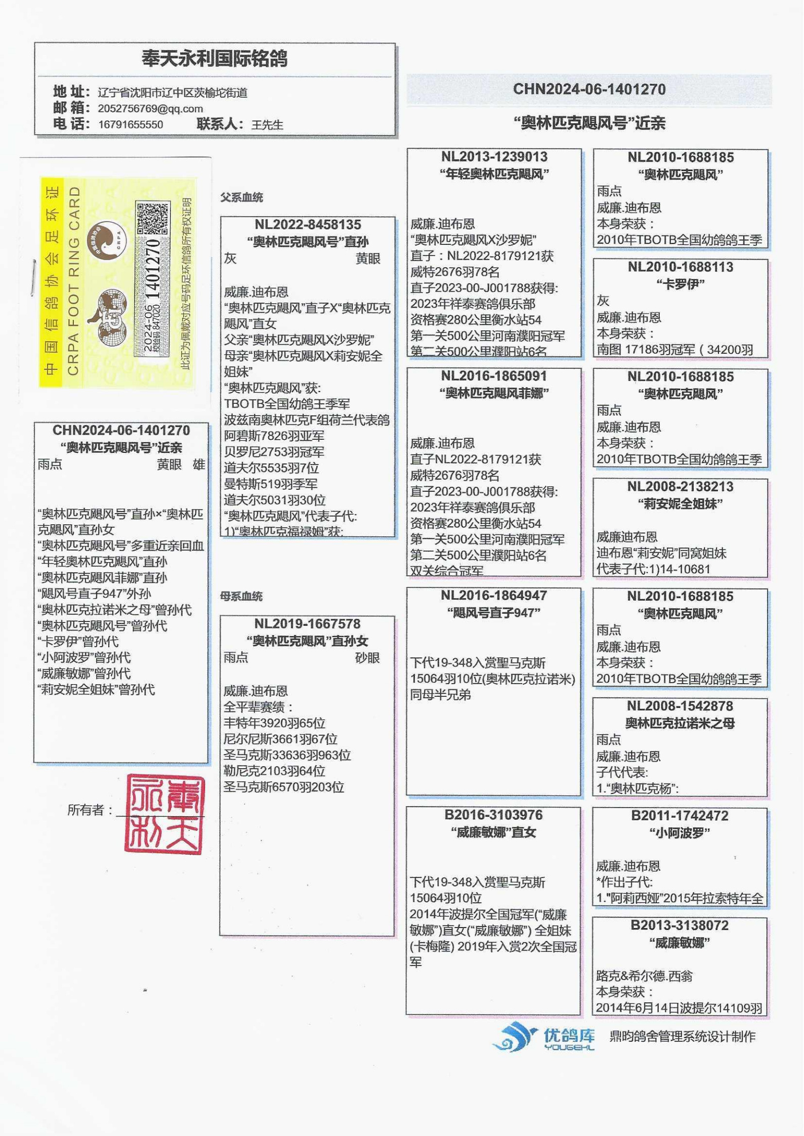 父亲:NL2022-8458135“奥林匹克飓风号”直孙
