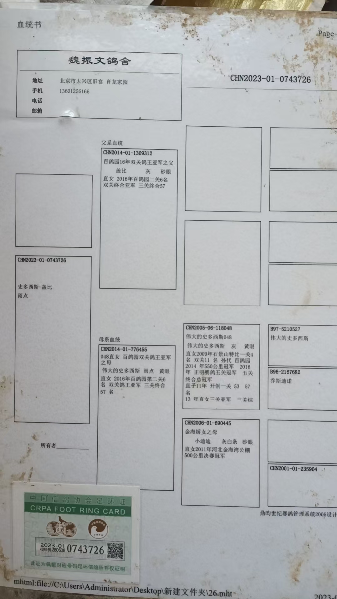 - 当前查看拍卖鸽:北京魏振文:史多西斯726