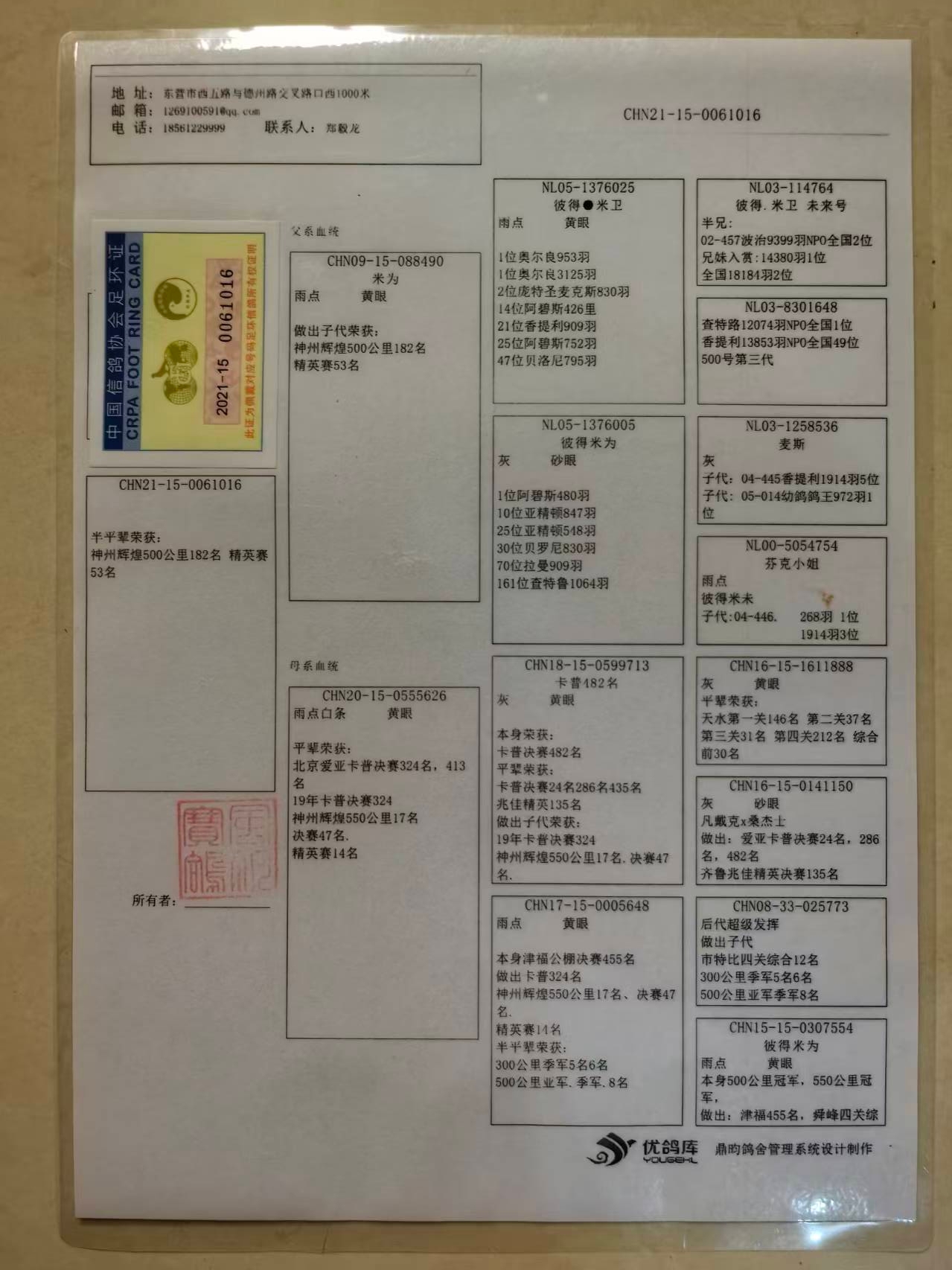| 1651114 | 鸣威公棚550公里320名 | ¥0元 | 0次 |