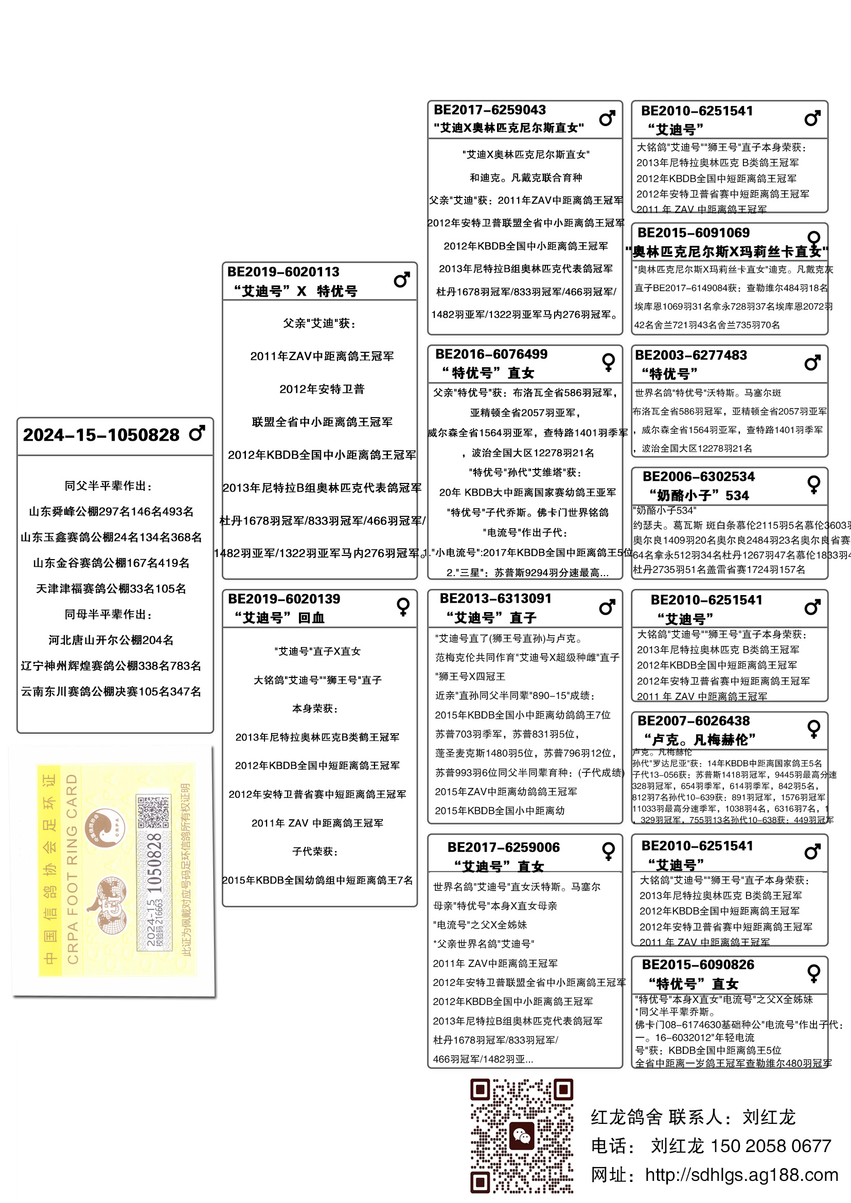 大铭鸽"艾迪号""狮王号"直子本身荣获: