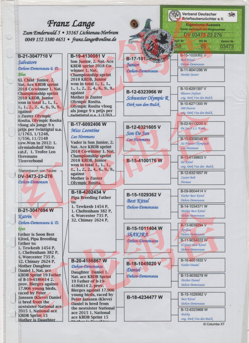 - 当前查看拍卖鸽:迪霍.迪蒙苏“最佳基特尔”家族