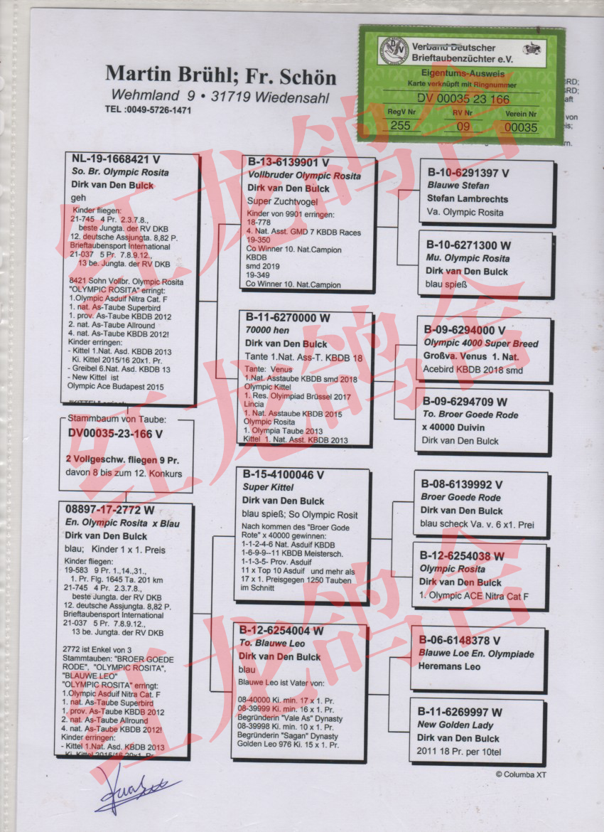| 1651186 | 威廉迪布恩“奥林匹克汉斯”回血鸽 | ¥0元 | 0次 |