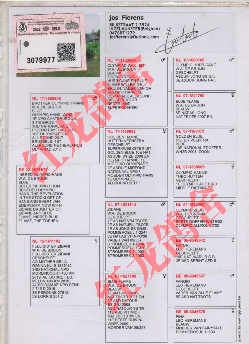 - 当前查看拍卖鸽:威廉迪布恩“奥林匹克汉斯”回血鸽