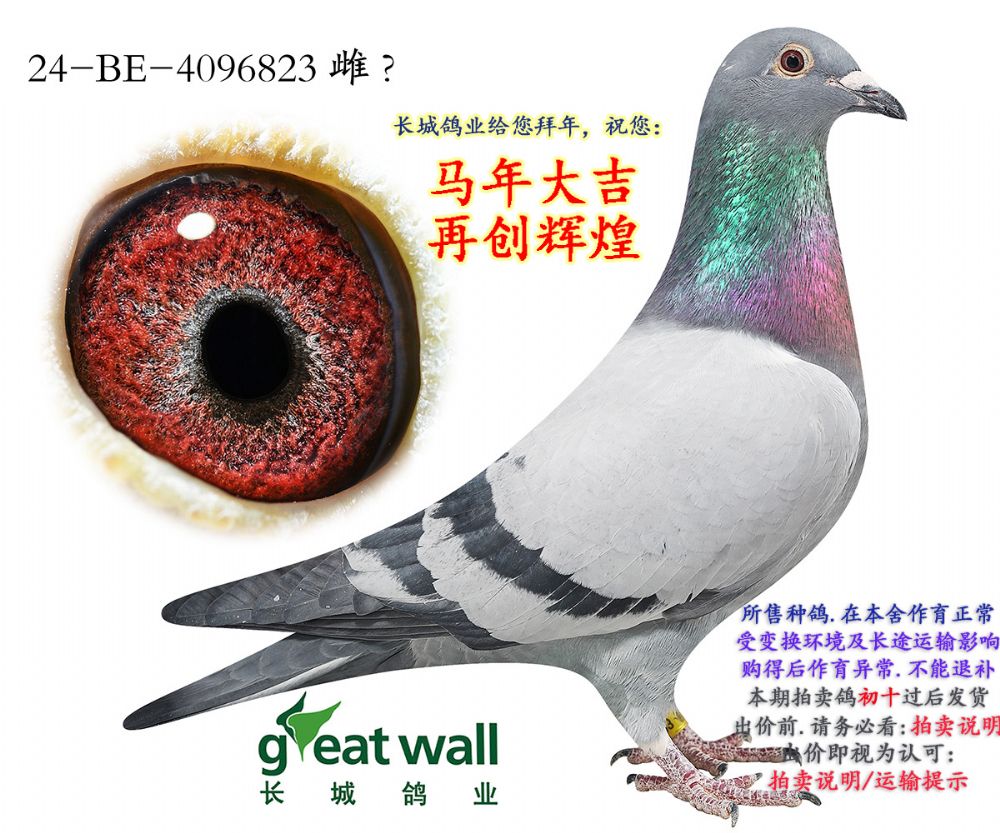 因拍卖鸽均是未做育过的种鸽或幼鸽,图内所标雌雄仅供参考,实际性别已实物为准。不做退换理由。