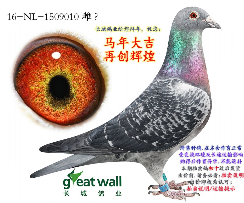 所有拍卖赛鸽,变换鸽舍及周边环境;如出现健康问题:发鸽之日起7日内联系;如有做育问题:秋季拍卖鸽,3个月内联系反馈;春节过后所售拍卖鸽,做育问题请在1个月内联系反馈。请鸽友收到鸽子实验配对做育,逾期本鸽业将不负责。不要1-2年后再联系我们反馈问题,时间长了,无法断定是在本舍还是您的鸽舍出现的问题。