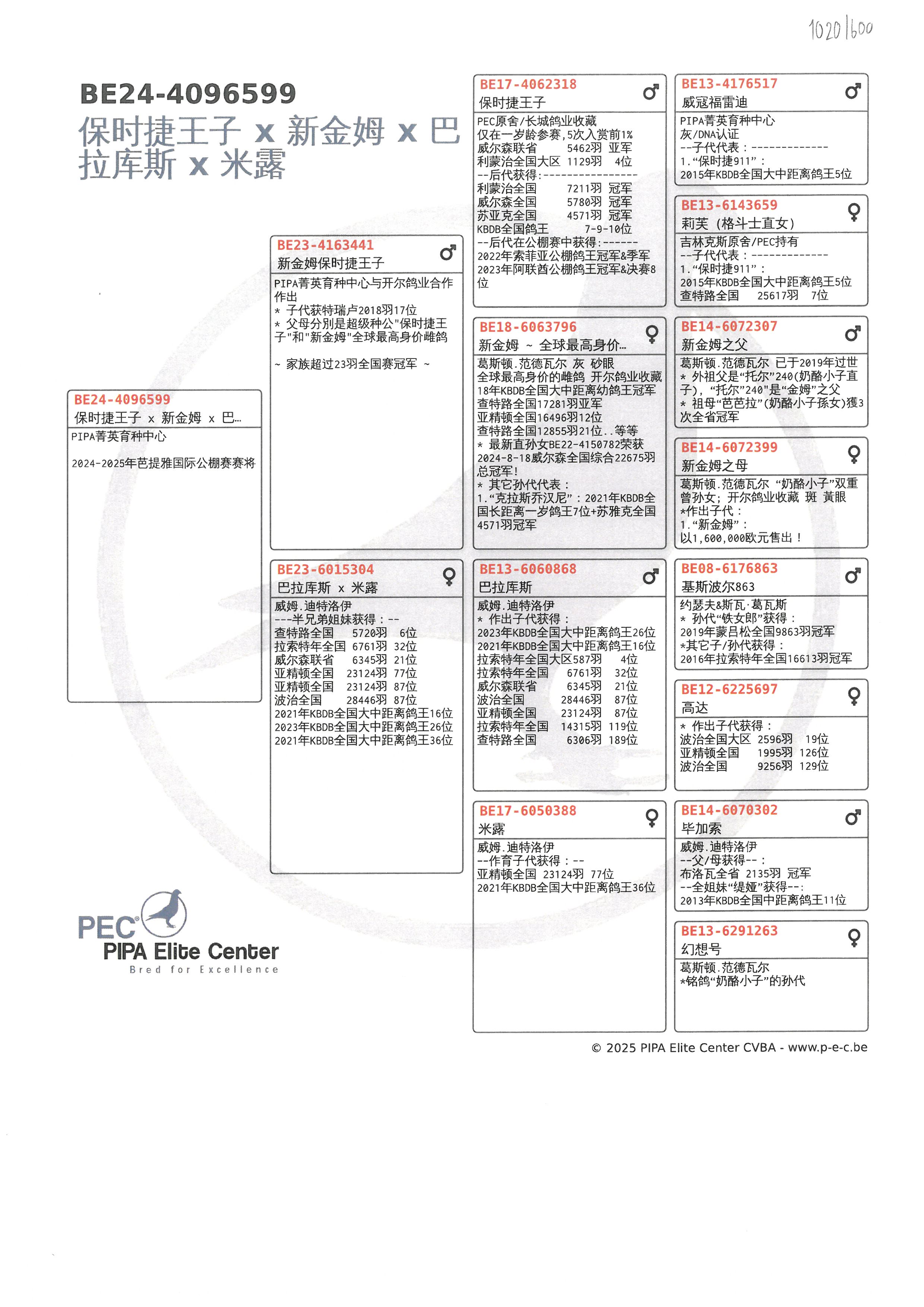 八万 比利时02年中距离KBDB国家鸽王5名直子 做出吉信俱乐部四关鸽王7名,17名,万龙俱乐部五关鸽王四名,燕山公棚鸽王十四名,18年北京卡普公棚563名,19年德兴俱乐部300公里28名,孙代赢得19年开创第四关75名,四关综合154名,北京卡普决赛9名,300公里73名,155公里亚军,琨泰特比一关63名,涿州卡普决赛31名,中卫公棚决赛62名..