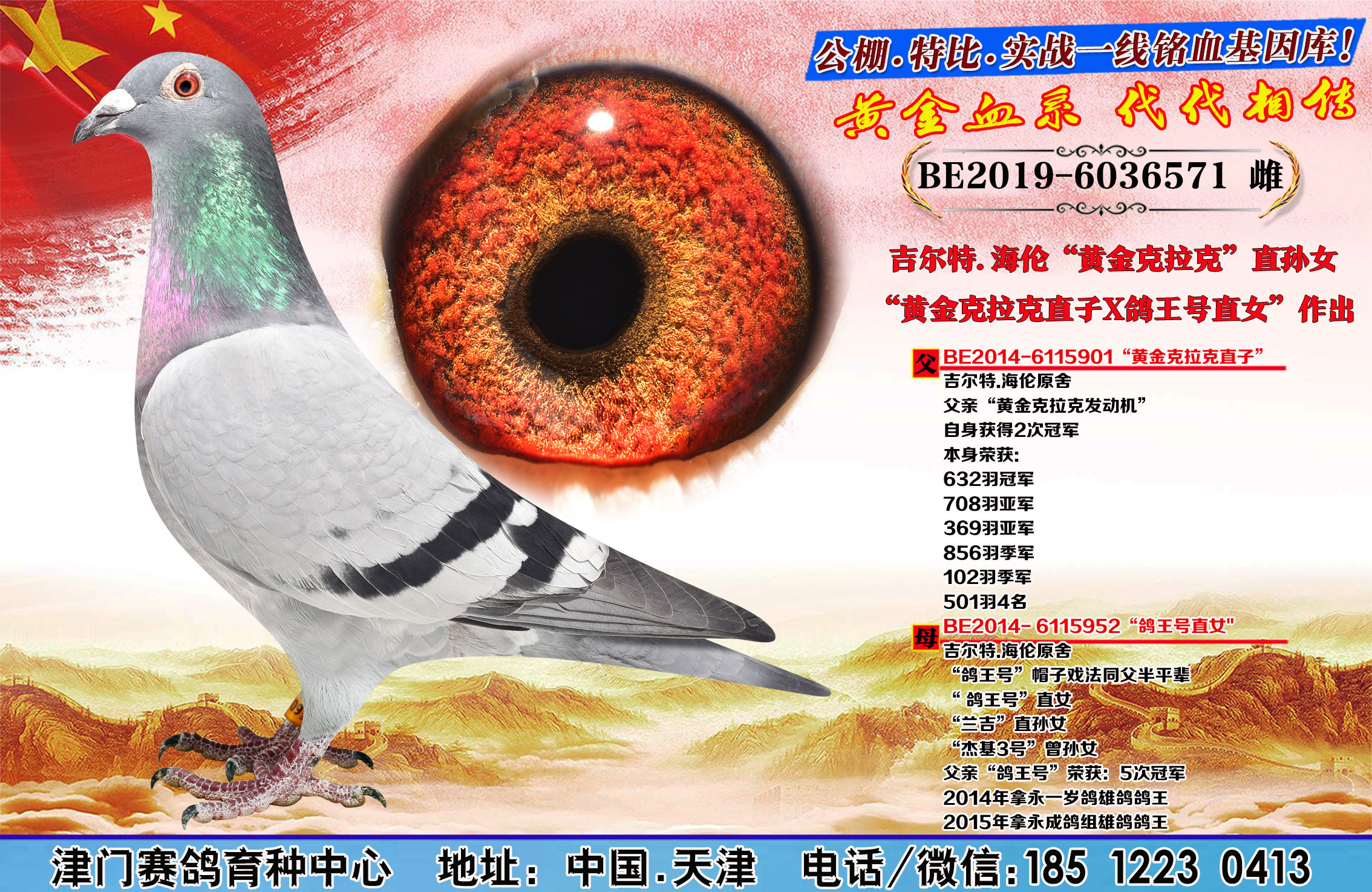 - 当前查看拍卖鸽:吉尔特.海伦“杰基3号近亲×黄金克拉克直