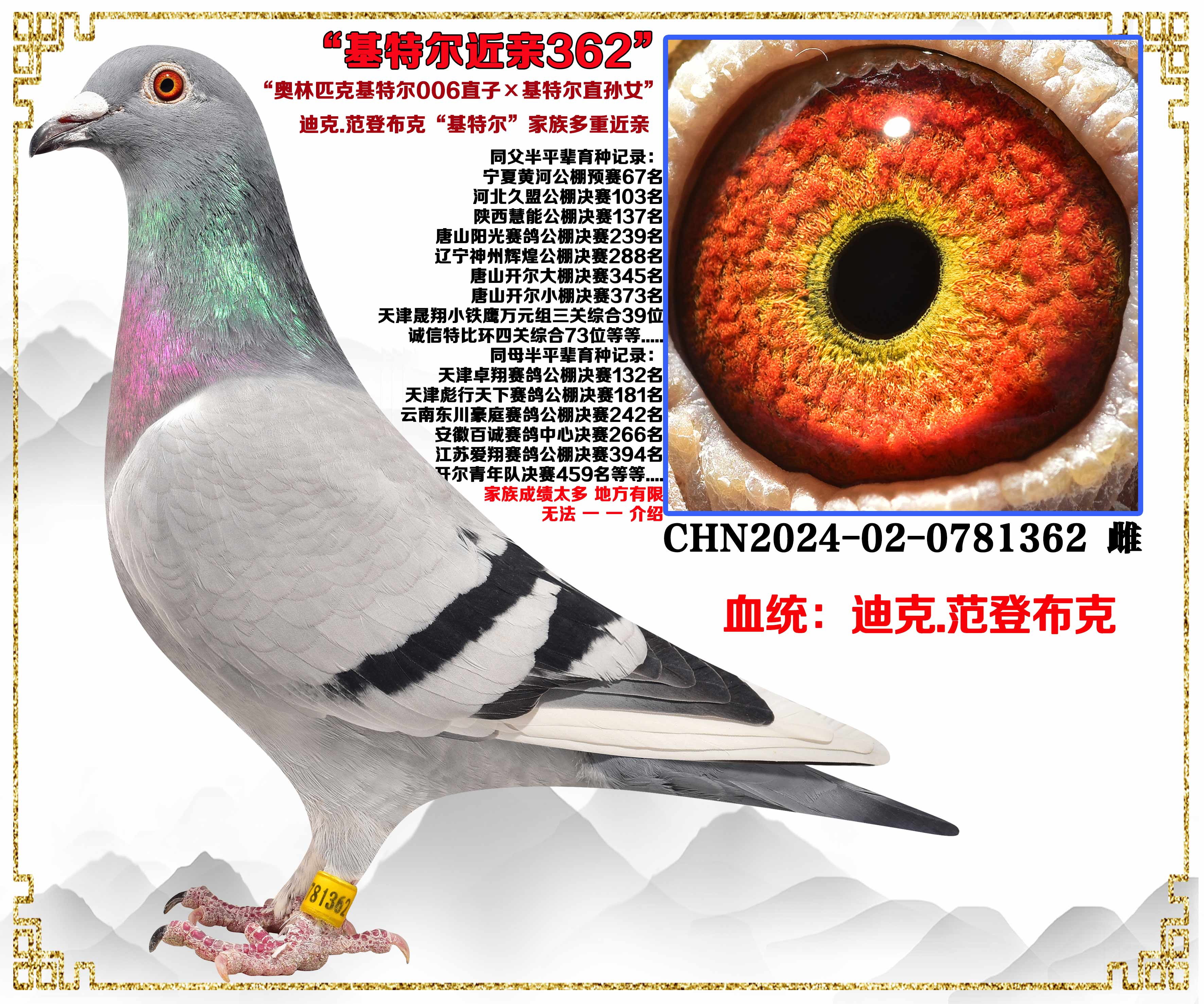 - 当前查看拍卖鸽:迪克.范登布克“基特尔006直子×基特尔