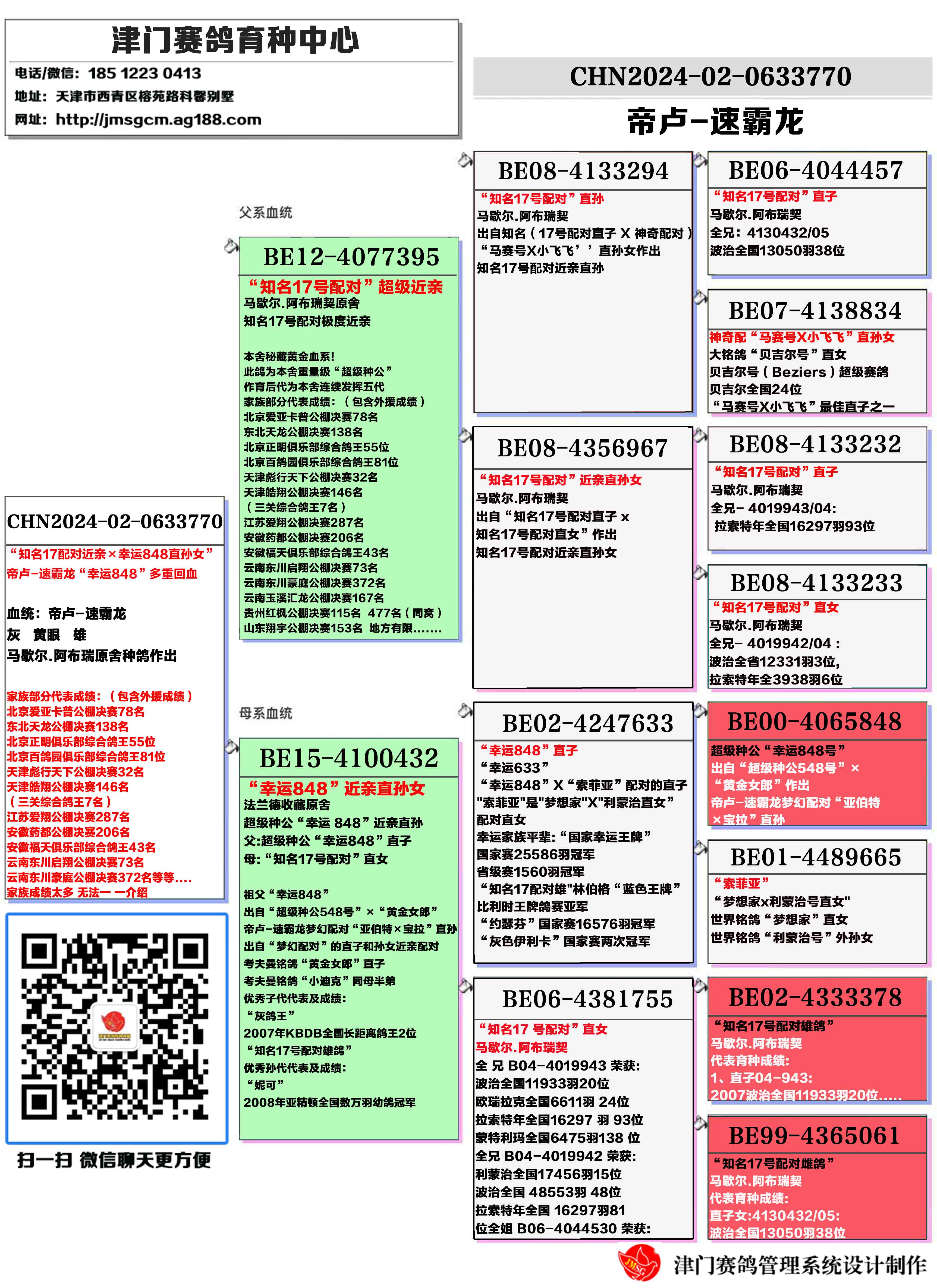 | 1651282 | 迪克范登布克“格里佩直子X格里佩直孙女”近亲回血 | ¥1000元 | 1次 |