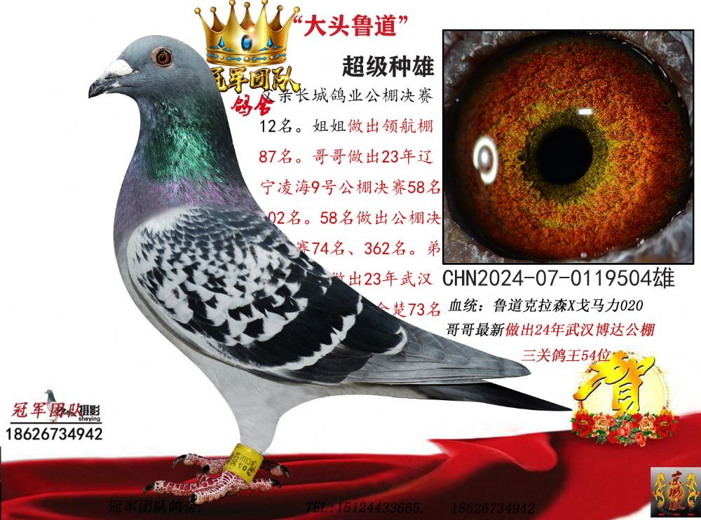 空间有限分享优质种源,假一赔百,拒卖百家鸽。机不可失。成绩、血统永久保真。血统书足环卡随鸽发出。