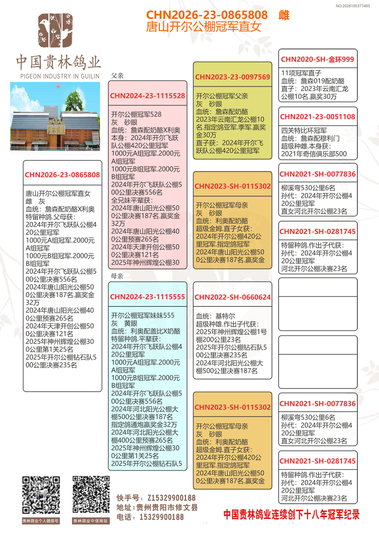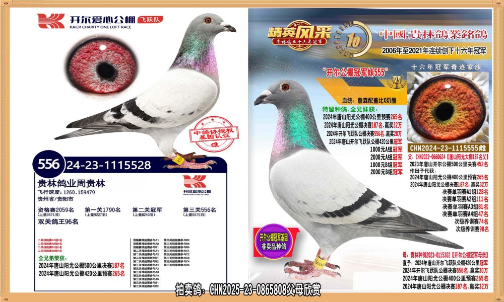 1651359 500公里亚军全妹.平辈作出开尔公棚冠军.500公里鸽王 ¥600元 0次
