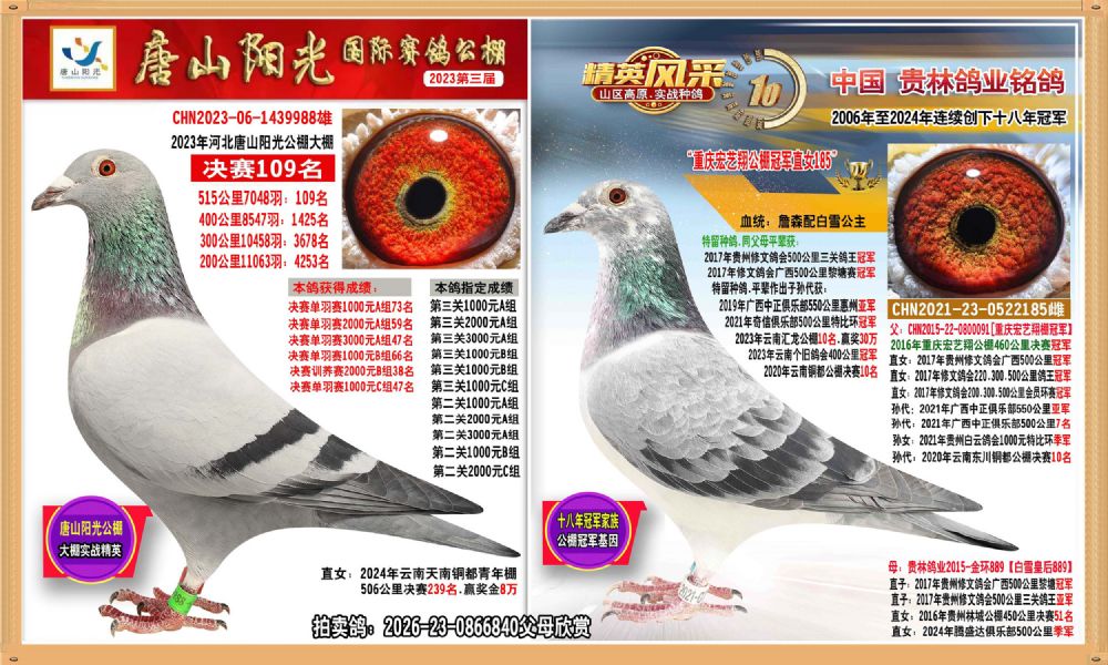 ★贵林鸽业2006年至2024年连续创下十八年冠军记录!200公里冠军.300公里冠军.400公里冠军.500公里冠军.公棚冠军.特比环冠军.三关鸽王冠军.四关鸽王冠军.大小冠军无一缺席!