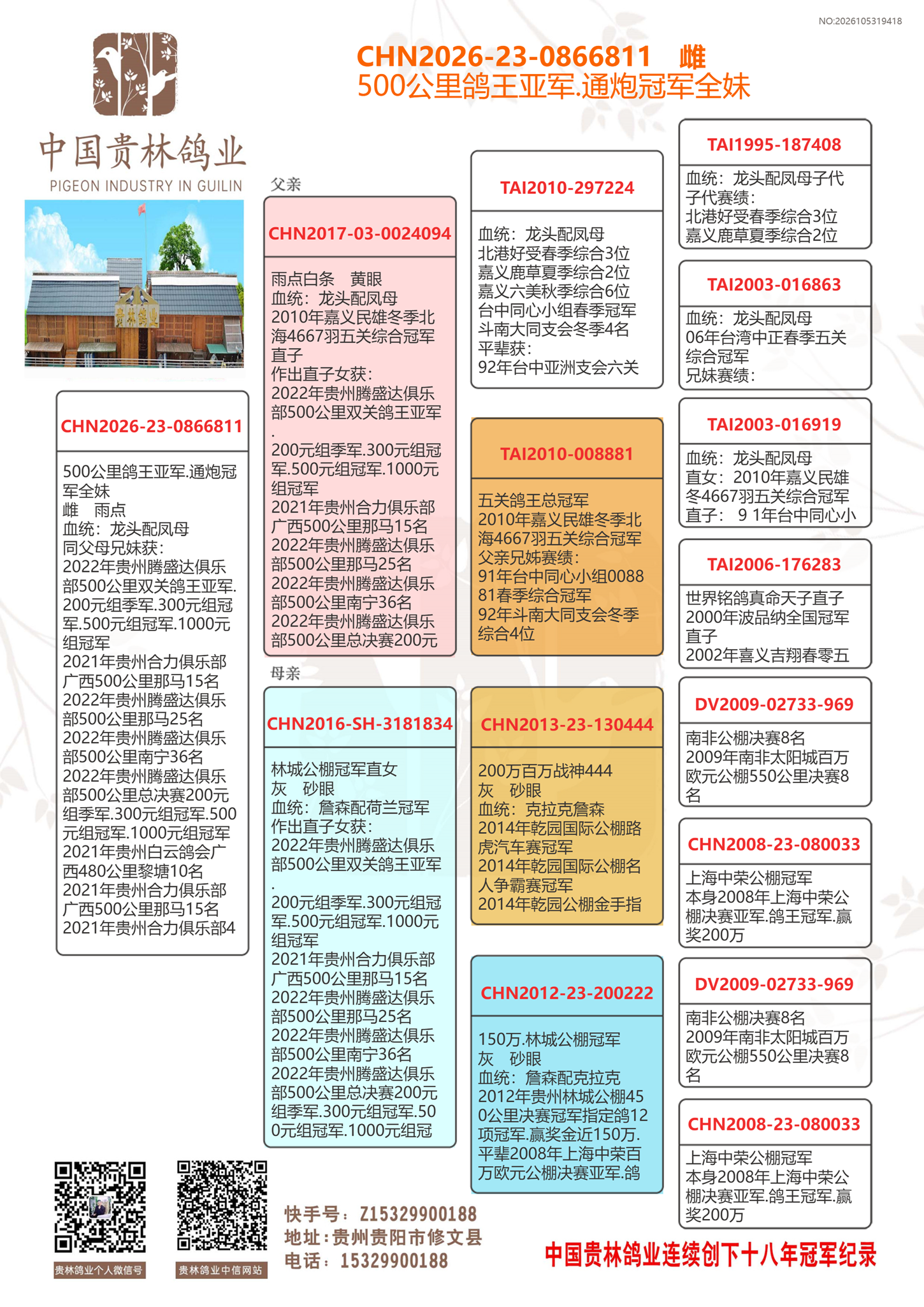 ★贵林鸽业2006年至2024年连续创下十八年冠军记录!200公里冠军.300公里冠军.400公里冠军.500公里冠军.公棚冠军.特比环冠军.三关鸽王冠军.四关鸽王冠军.大小冠军无一缺席!