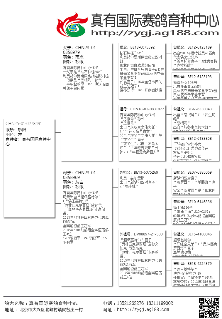 【在这三座金矿还未被世人发现之前,真有国际就第一时间把高品质的鸽子带到了国内,取得了空前的发挥。近几年大家才逐渐认识这几位大师鸽子的魅力。请记住!当任何商业鸽舍进入炒作后期的时候,他的鸽子质量与价值都会急剧下降,即便是詹森兄弟也难免于此。所以引进这家鸽舍最巅峰时期的鸽子,得以延续,才是真有国际成功的致胜法宝。】
