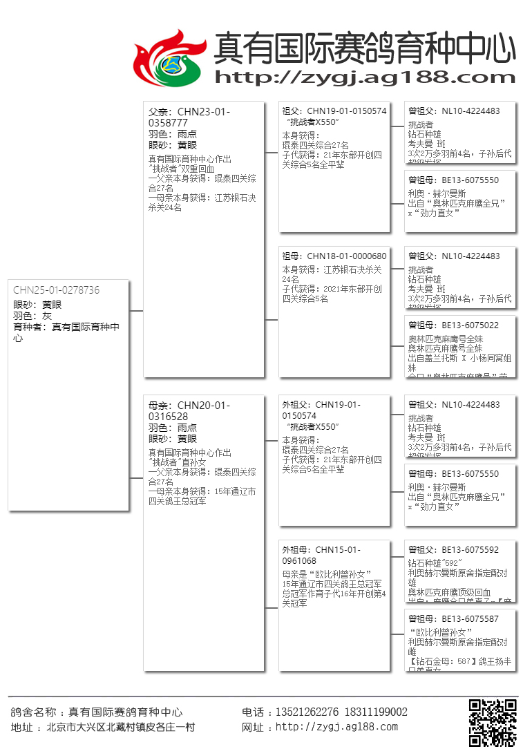 【在这三座金矿还未被世人发现之前,真有国际就第一时间把高品质的鸽子带到了国内,取得了空前的发挥。近几年大家才逐渐认识这几位大师鸽子的魅力。请记住!当任何商业鸽舍进入炒作后期的时候,他的鸽子质量与价值都会急剧下降,即便是詹森兄弟也难免于此。所以引进这家鸽舍最巅峰时期的鸽子,得以延续,才是真有国际成功的致胜法宝。】
