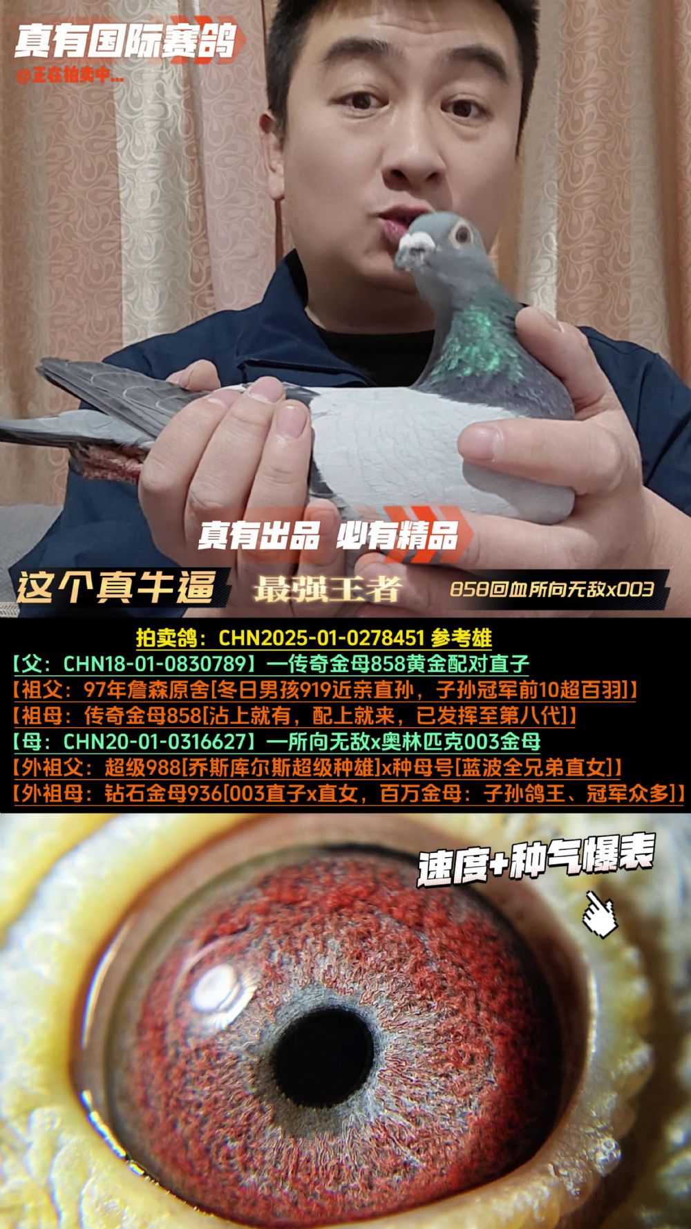| 1652948 | 《858强势遗传》麻鹰鸽王冠军近亲 | ¥2000元 | 1次 |