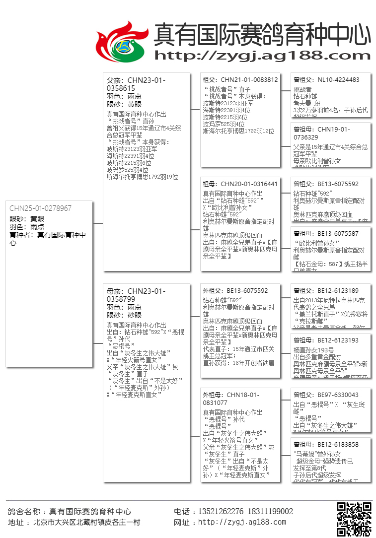 【在这三座金矿还未被世人发现之前,真有国际就第一时间把高品质的鸽子带到了国内,取得了空前的发挥。近几年大家才逐渐认识这几位大师鸽子的魅力。请记住!当任何商业鸽舍进入炒作后期的时候,他的鸽子质量与价值都会急剧下降,即便是詹森兄弟也难免于此。所以引进这家鸽舍最巅峰时期的鸽子,得以延续,才是真有国际成功的致胜法宝。】